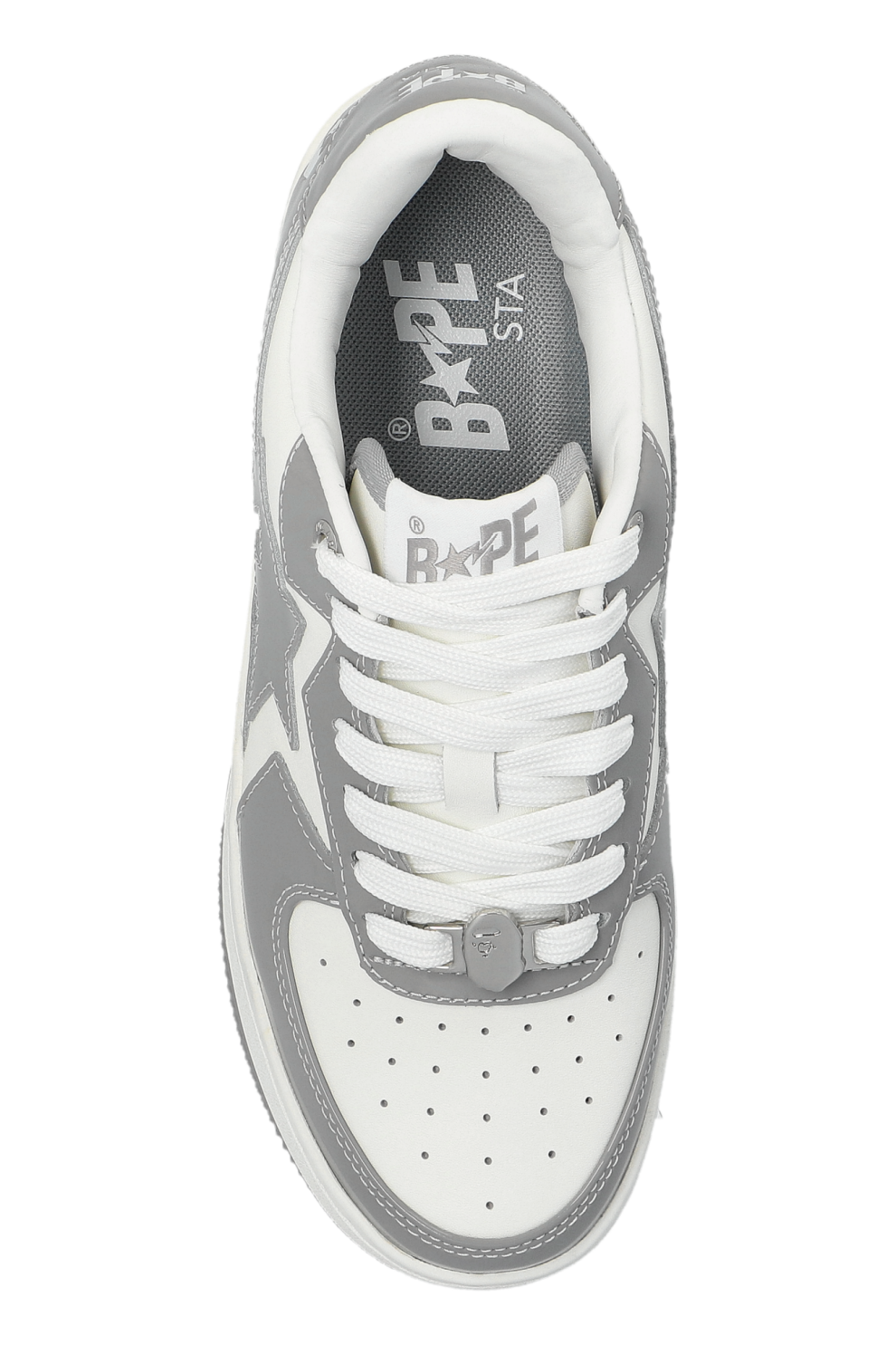 Ключевым акцентом выступает фирменная звезда STA — узнаваемый символ A Bathing Ape, который подчёркивает идентичность бренда. Контрастный логотип «BAPE», размещённый на пятке и боковой части подошвы, усиливает визуальную выразительность и завершает композицию.