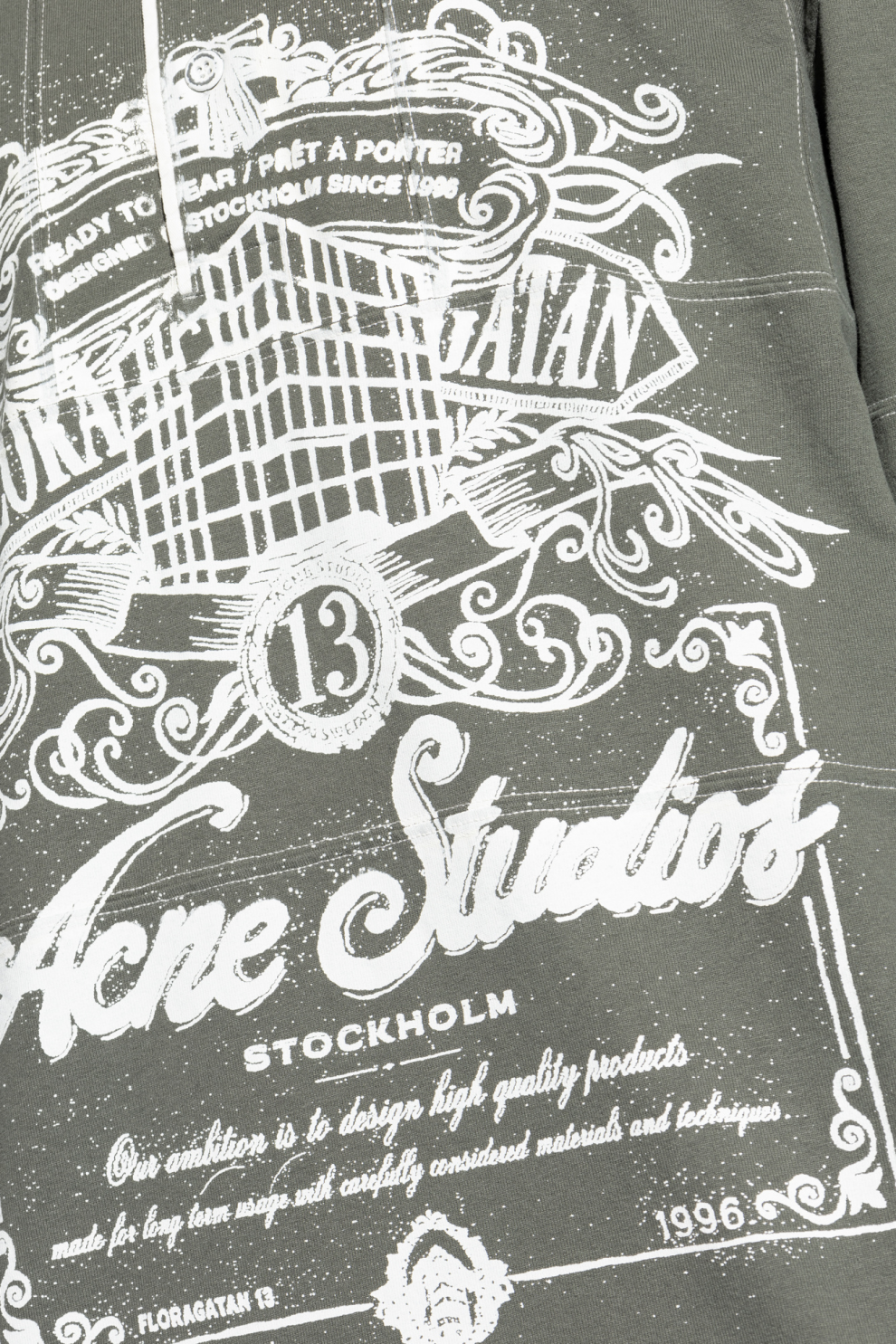 Привлекает внимание яркий белый принт – архитектурный чертеж с названием Acne Studios и надписью STOCKHOLM, демонстрирующий исключительное внимание к деталям и вдохновляющий подход к моде.