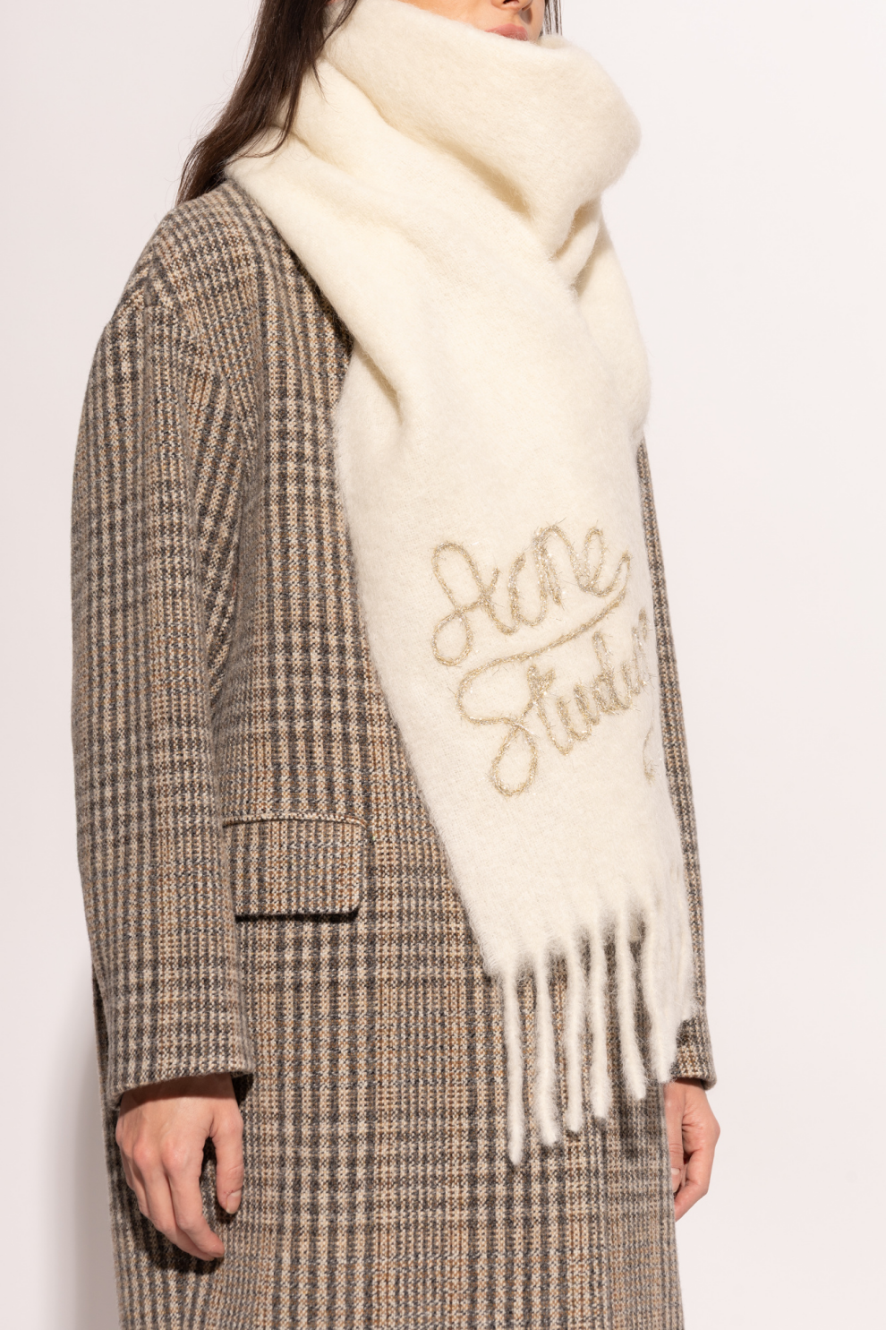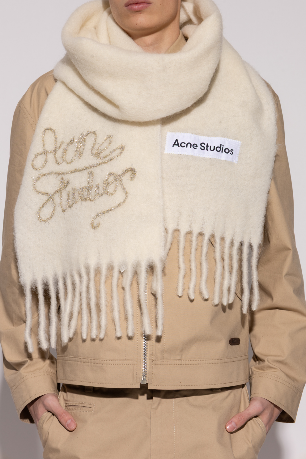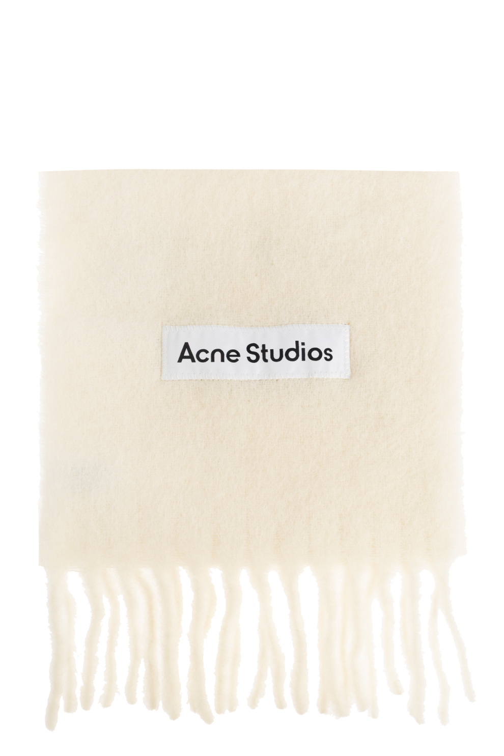 Шарф с логотипом Acne Studios — это уникальный вариант для тех, кто ищет аксессуар, выражающий утонченную элегантность. Этот кремовый прямоугольный шарф очаровывает своей вытянутой формой и эффектной густой бахромой, придающей ему легкость.