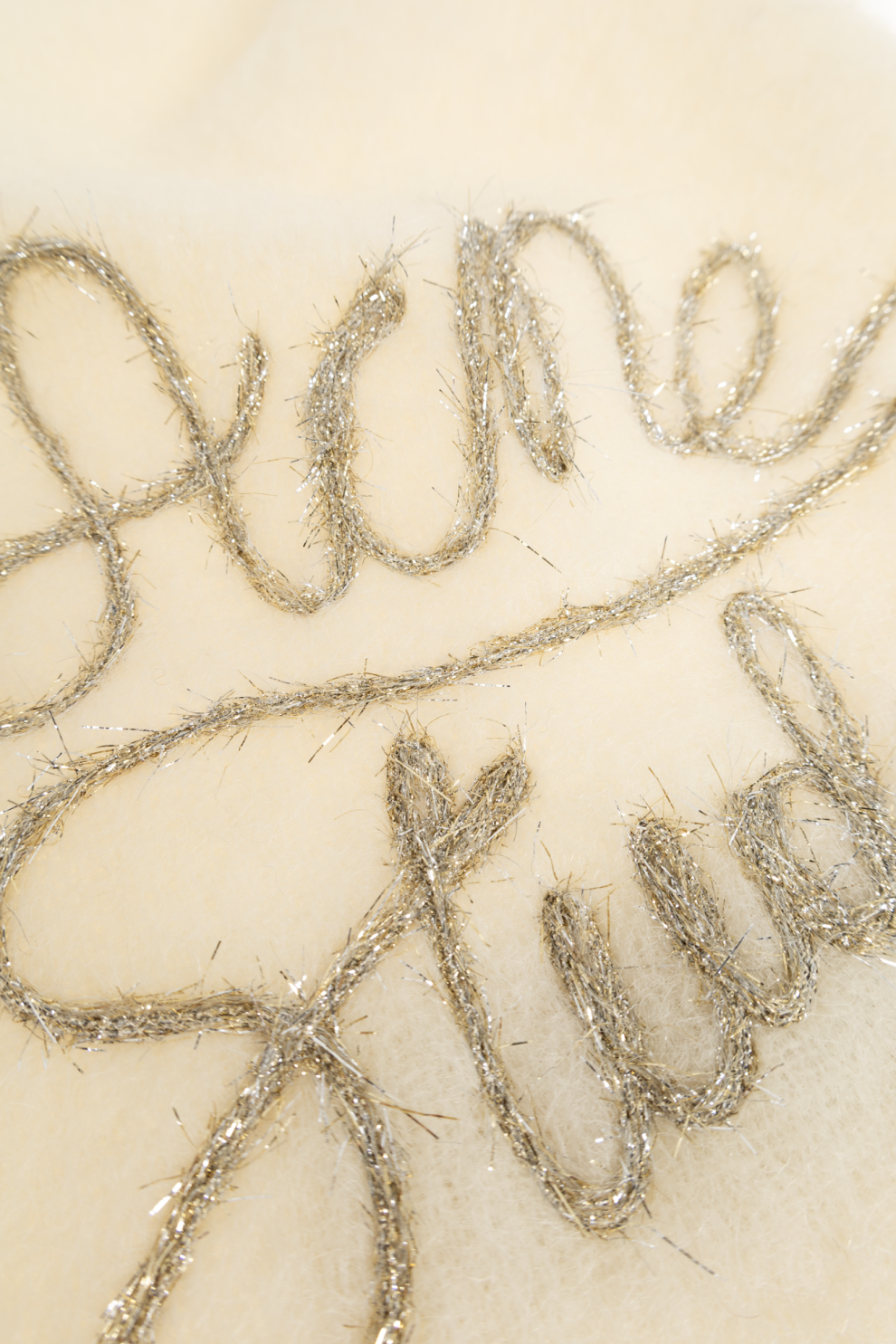 Материал: 33% альпака, 25% шерсть, 22% нейлон, 20% мохер; контрастная ткань: 45% металлизированное волокно, 55% нейлон.