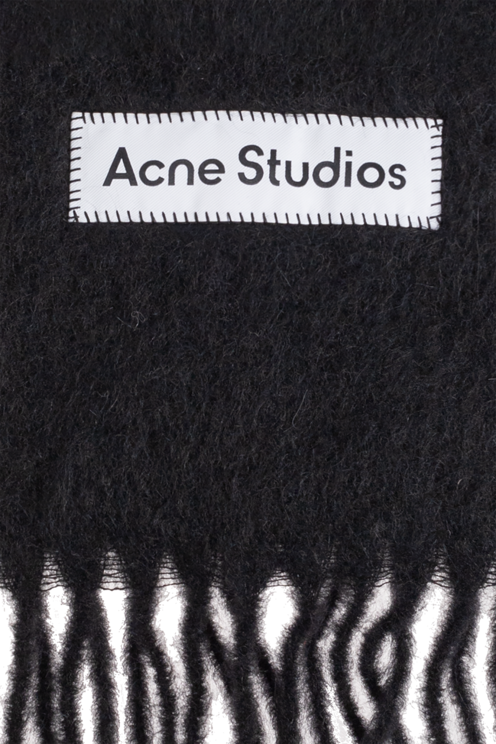Этот черный шерстяной шарф очаровывает своей вневременной элегантностью и утонченным минимализмом, характерными для дизайнеров Acne Studios. Его прямоугольная форма, отделанная красиво расположенной длинной бахромой, ненавязчиво подчеркивает его классический характер.
