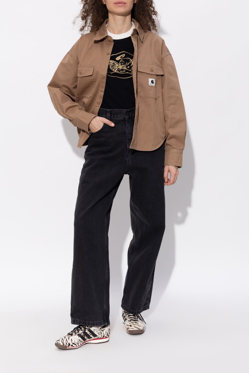 Лаконичный низкий силуэт подчеркивает спортивное происхождение модели. Верх в кремовом оттенке украшен контрастным узором в черно-коричневой гамме и выполнен из текстильного материала с деликатной ворсистой фактурой, придающей паре выразительный характер.