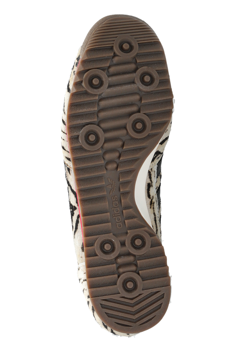 Кожаные три полоски по бокам сохраняют фирменную эстетику бренда. Коричневая резиновая подошва с характерным протектором обеспечивает надежное сцепление, а аккуратные красные акценты завершают дизайн.