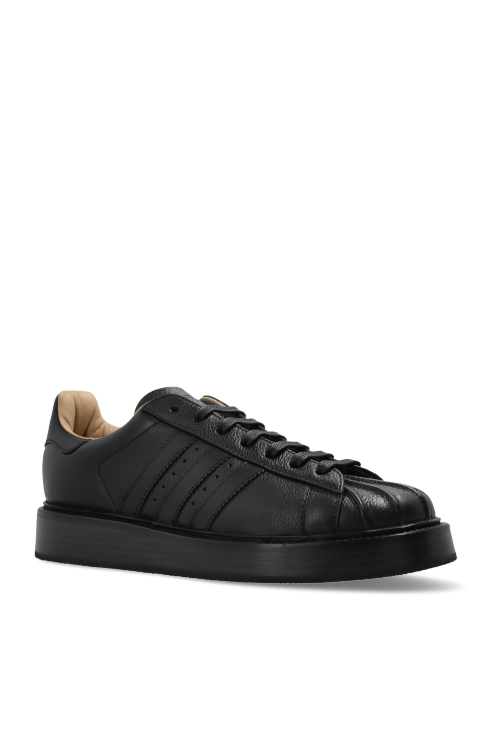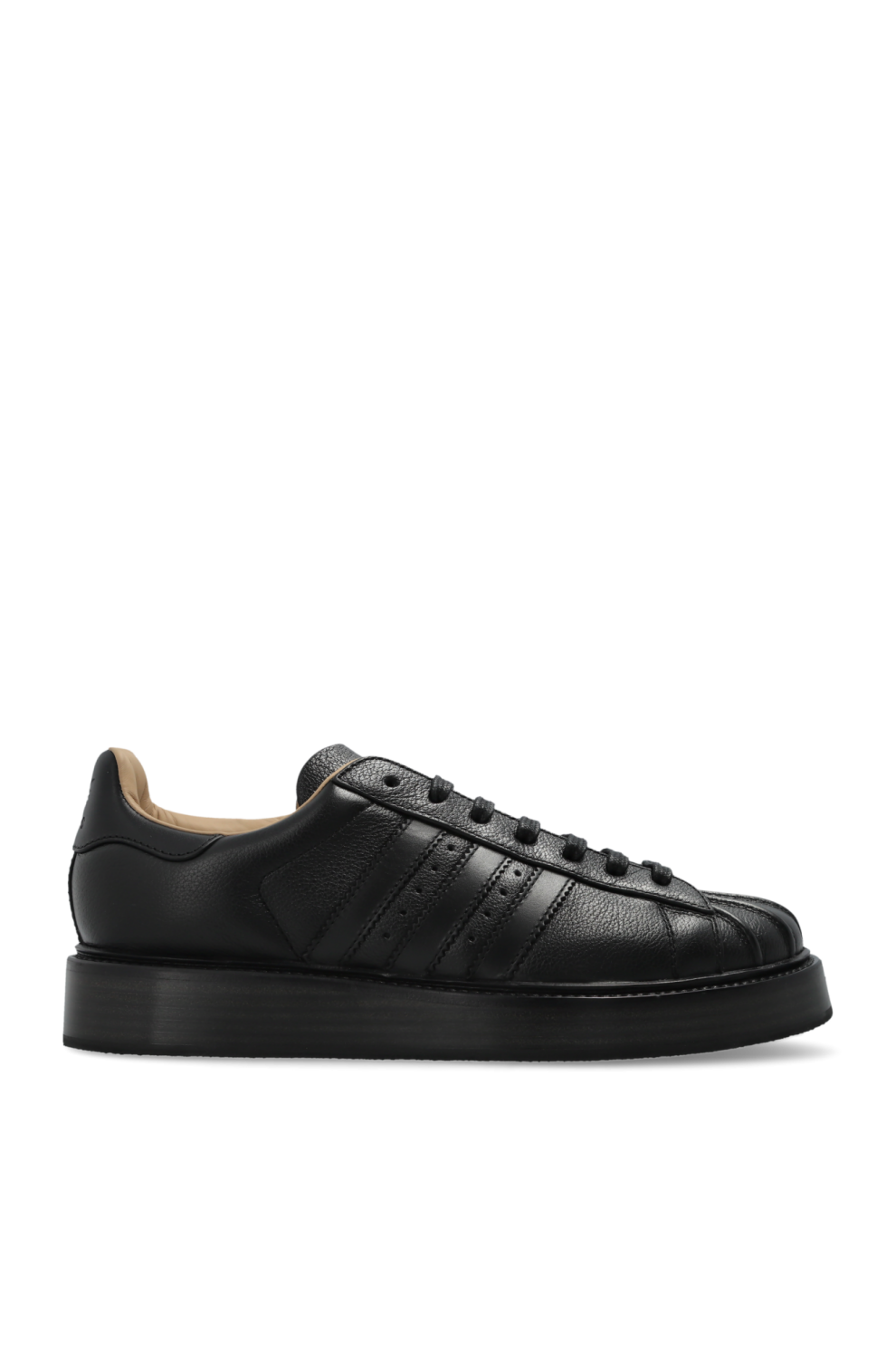 Классический низкий силуэт дополнен фирменным резиновым «ракушечным» носком, который сохраняет культовую архитектуру линии Superstar. Верх из натуральной кожи с выразительной зернистой текстурой придает модели благородный и премиальный характер.