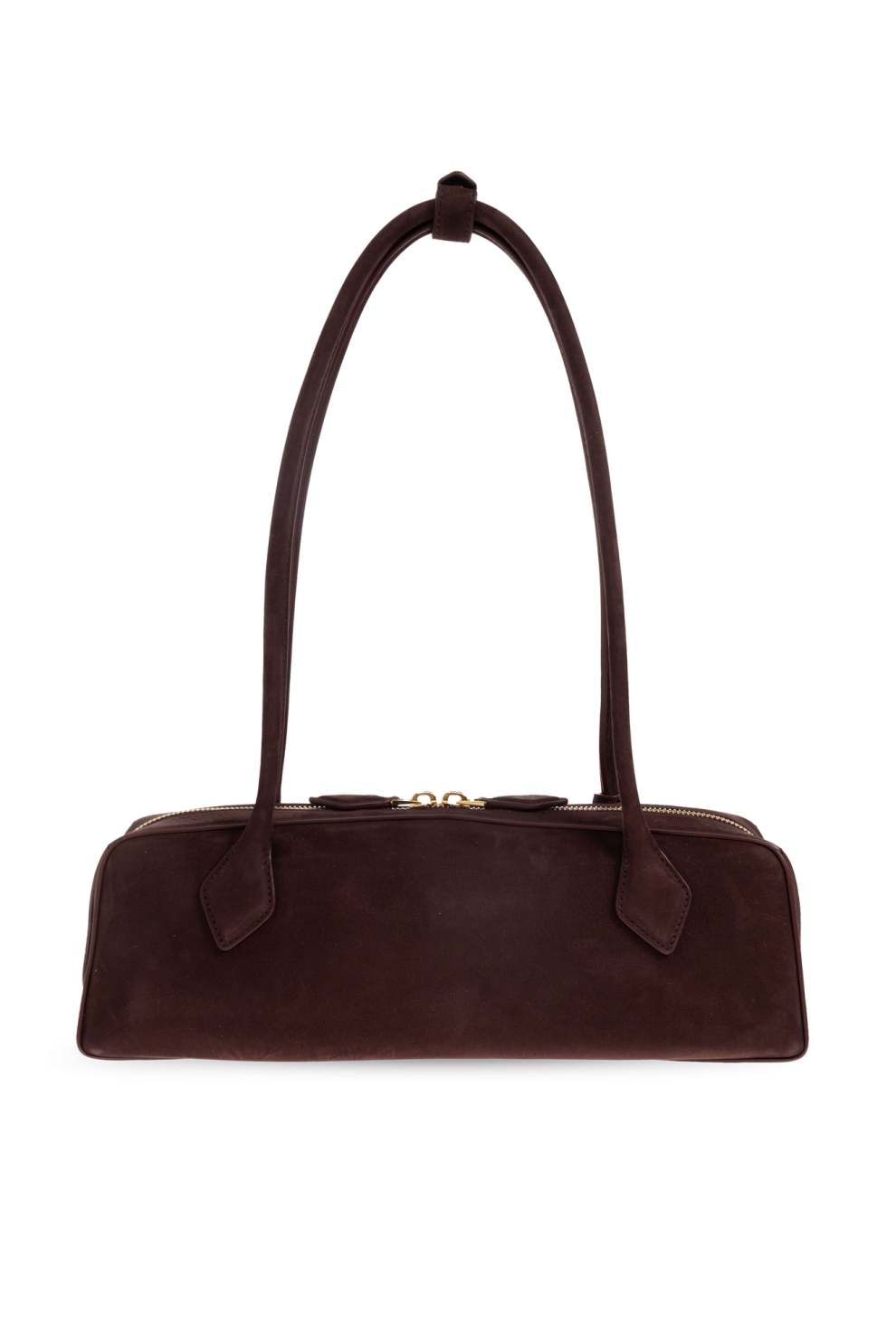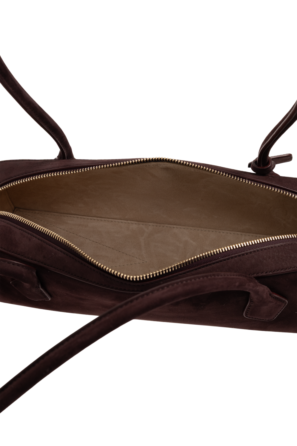 Внутренняя отделка выполнена в контрастном, более светлом тоне, создавая изысканный визуальный баланс и подчёркивая внимание к деталям. Золотистая фурнитура — включая деликатную двойную молнию — добавляет тонкий акцент роскоши, не нарушая общей минималистичной эстетики.