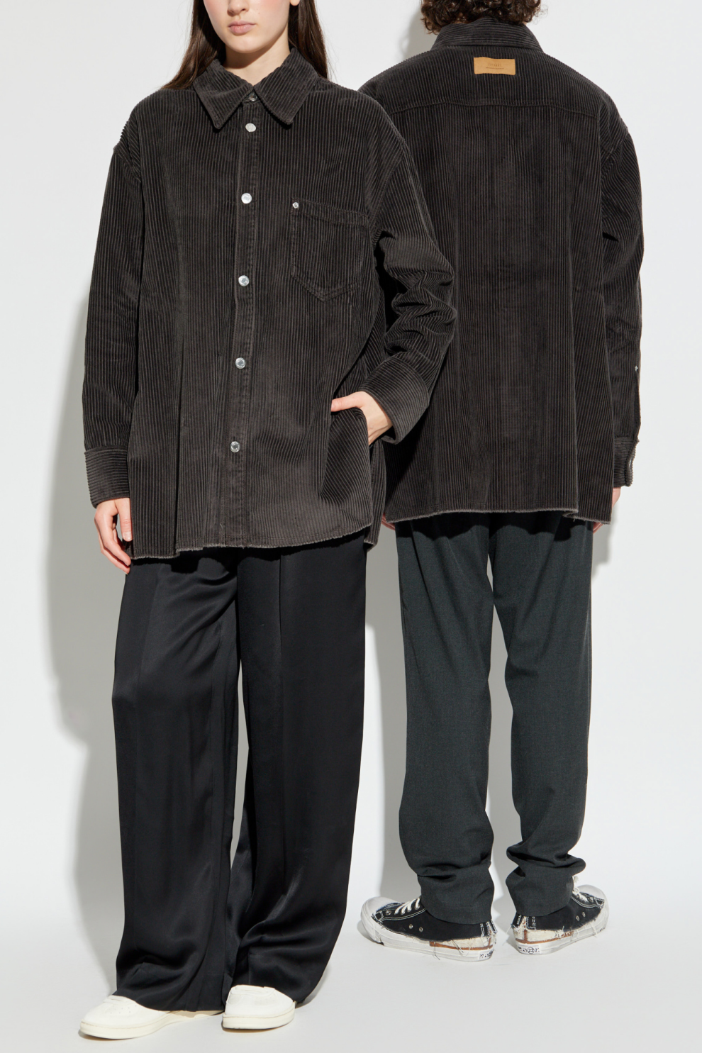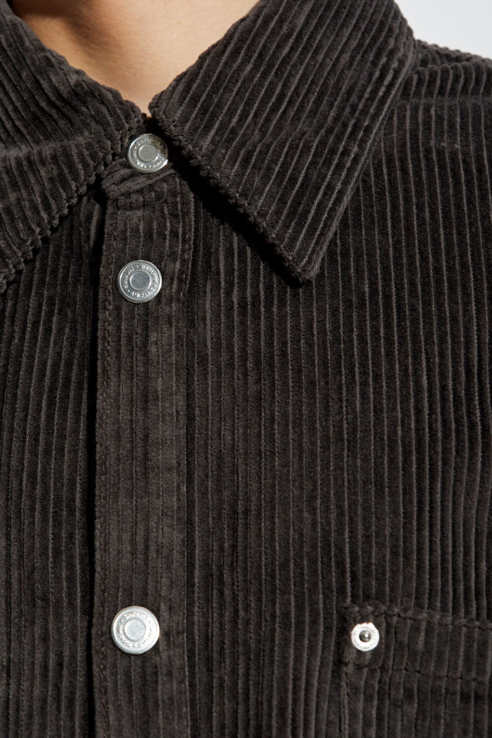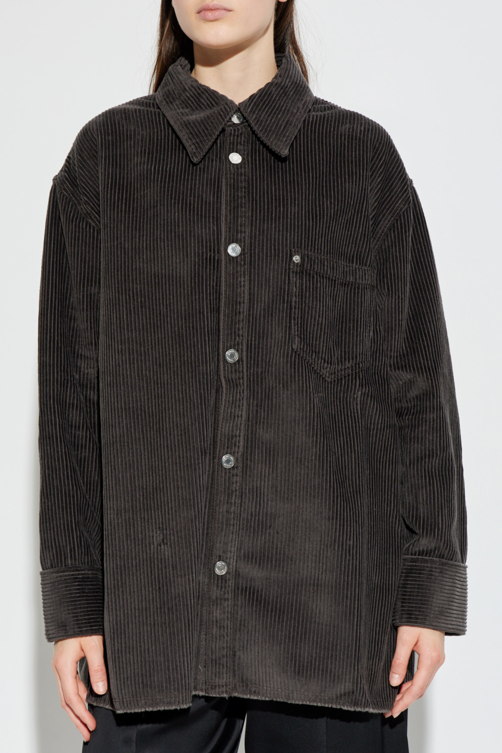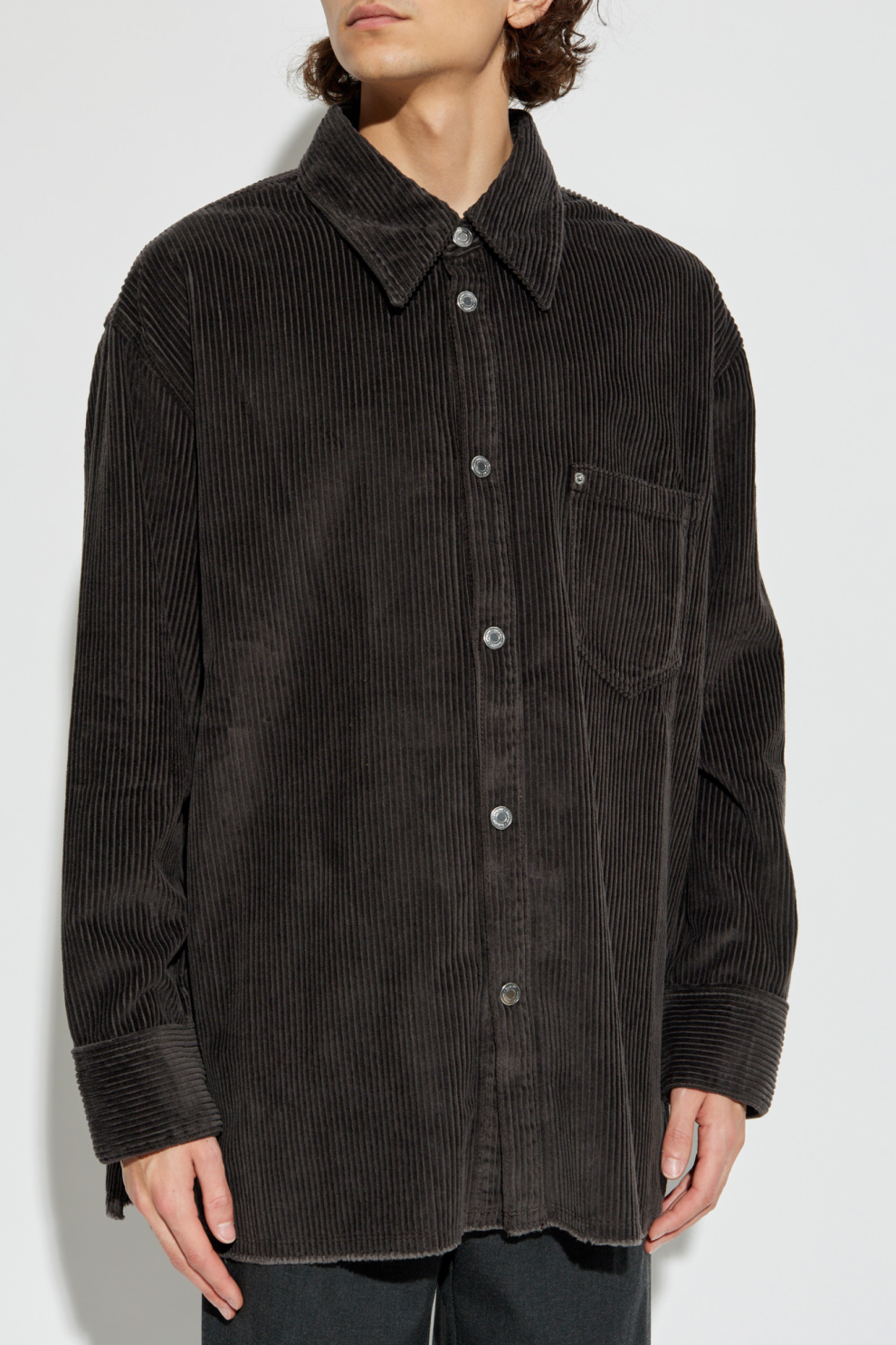 Эта тёмно-серая вельветовая рубашка от Ami Alexandre Mattiussi – воплощение изысканной парижской непринужденности. Изготовленная из натурального хлопка, она украшена широкими, выразительными рубчиками, подчёркивающими изысканность материала и внимание к деталям. Свободный, слегка свободный крой и длинные, расклешённые рукава обеспечивают исключительный комфорт.