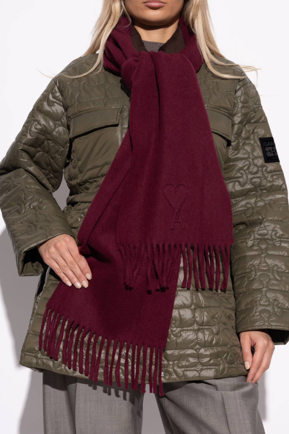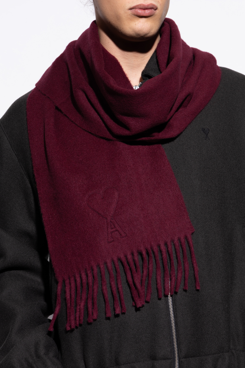 Шерстяной шарф с бахромой от французского бренда Ami Alexandre Mattiussi (AMI Paris) излучает утонченную элегантность и вневременной стиль.
