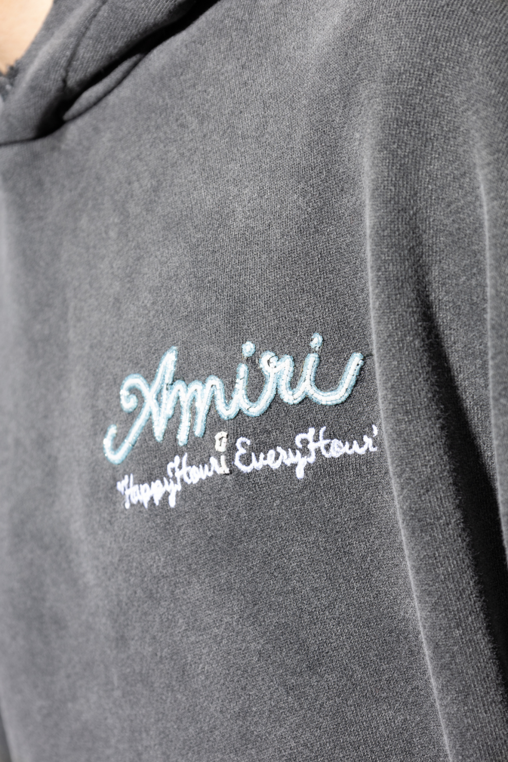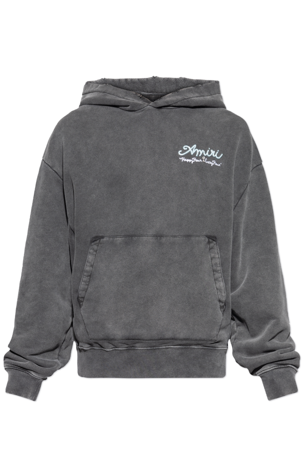 Винтажный серый оттенок придаёт толстовке изысканный вид, который дополняет высококачественный мягкий хлопок с добавлением эластана, обеспечивающий комфорт и долговечность. Изящная вышивка – логотип «Amiri» светло-голубого цвета и надписи «Happy Hour Every Hour» – добавляет уникальный художественный штрих как спереди, так и в эффектный дизайн сзади .