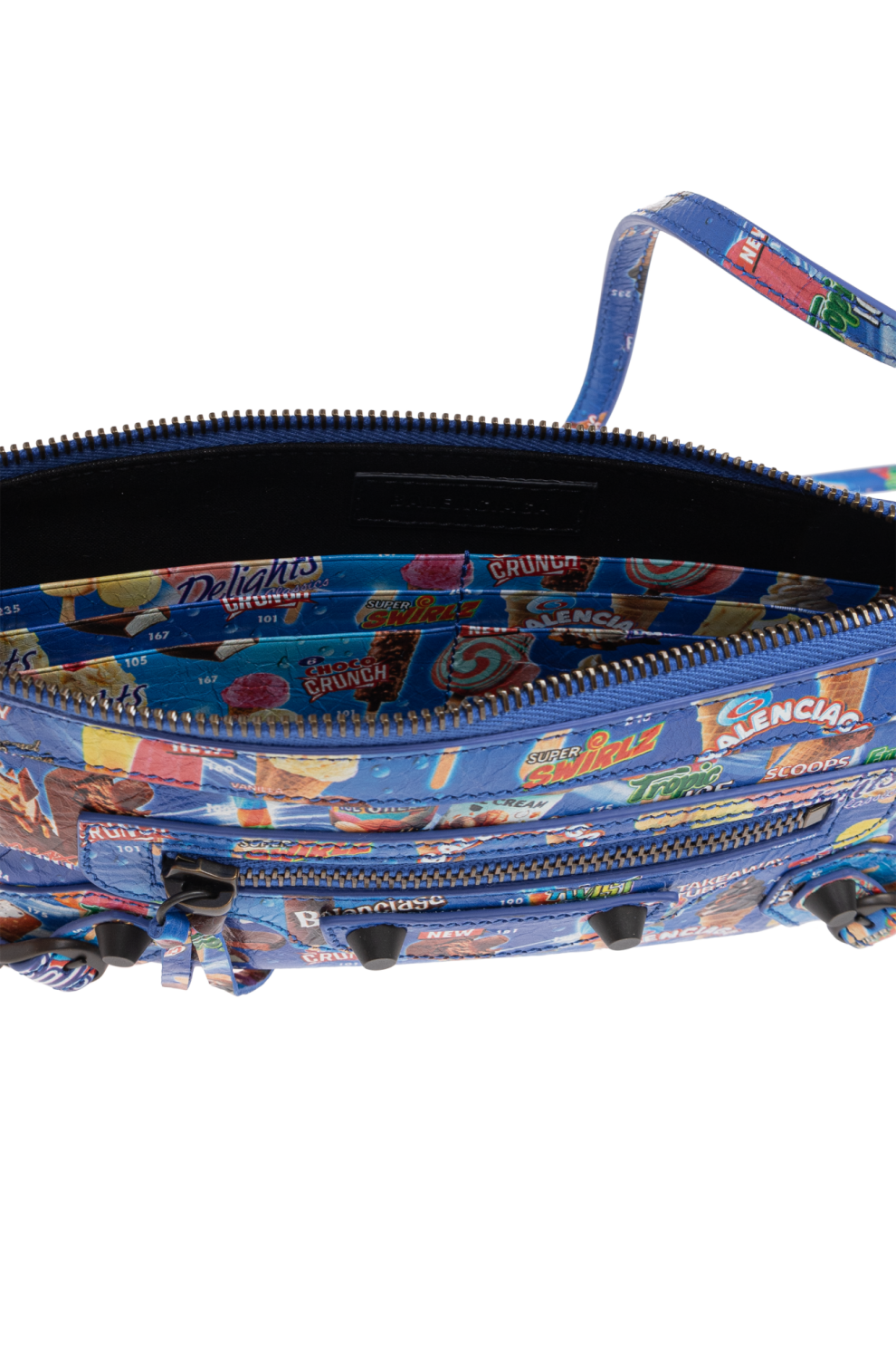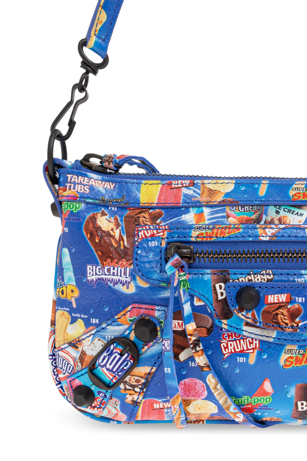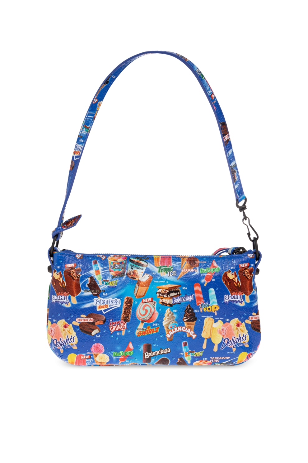 Вытянутая форма багета с мягко закруглёнными краями сохраняет узнаваемую архитектуру линии Le City, при этом наполняясь новым характером благодаря насыщенному поп-арт принту. Мотивы мороженого и сладостей добавляют дизайну лёгкость, иронию и молодёжное настроение, создавая эффектный контраст с премиальными материалами.
