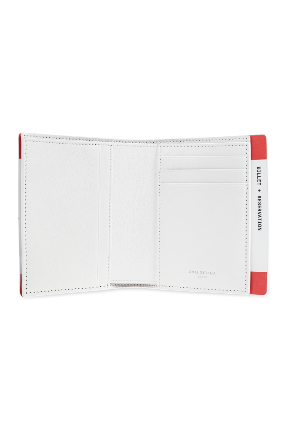 Этот кожаный кошелек с принтом сочетает виртуозность современного дизайна с непреходящей функциональностью. В этом кошельке преобладает белый цвет, а его оригинальный принт, стилизованный под билет, завораживает – невероятно выразительный мотив, который привлечет внимание ценителей уникальных аксессуаров. Надпись BALENCIAGA , размещенная как на внешней, так и на внутренней стороне кошелька, красноречиво свидетельствует об утонченном вкусе и престиже дизайна. Безупречная отделка и изысканная высококачественная кожа придают изделию роскошный вид, а тонкая текстура внутренней части подчеркивает внимание к деталям. Компактная прямоугольная складная форма делает его одновременно исключительно практичным и элегантным.