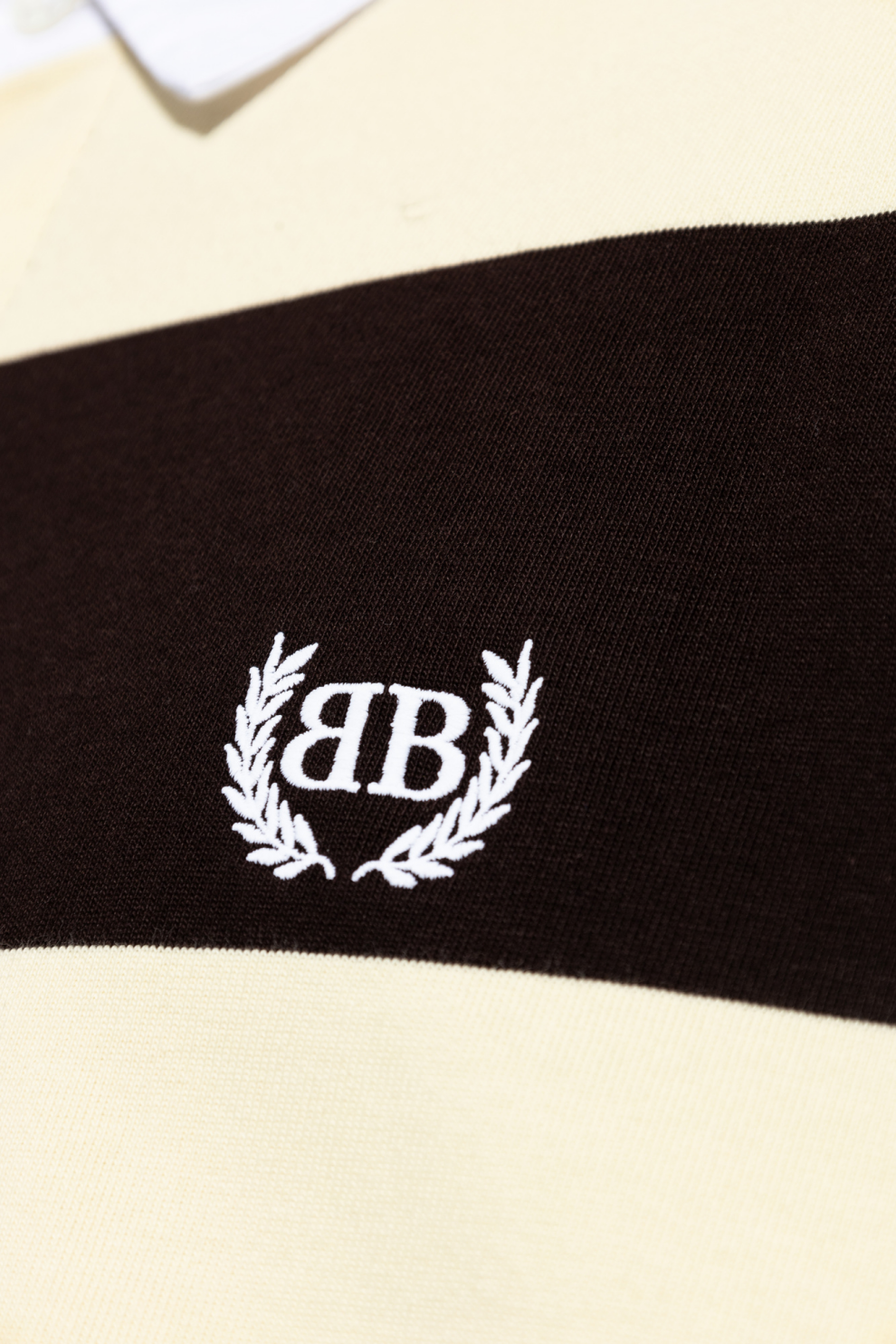 Мягкий плотный хлопок премиального качества обеспечивает комфорт, воздухопроницаемость и долговечность, сохраняя форму изделия при регулярной носке. На груди расположена изящная вышивка — логотип «BB», обрамленный лавровым венком, который подчеркивает статус и узнаваемую эстетику бренда.