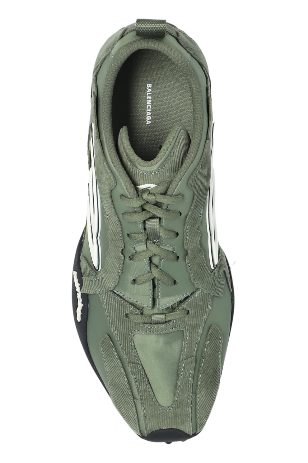 Гладкая поверхность модели дополнена геометрической и арочной строчкой, усиливающей графичность дизайна. Тисненый трёхмерный логотип сбоку и аккуратно оформленная пяточная зона придают кроссовкам современный, узнаваемый характер. Нескользящая резиновая подошва завершает композицию, обеспечивая устойчивость и комфорт при каждом шаге — идеальный баланс функциональности и эстетики Balenciaga.