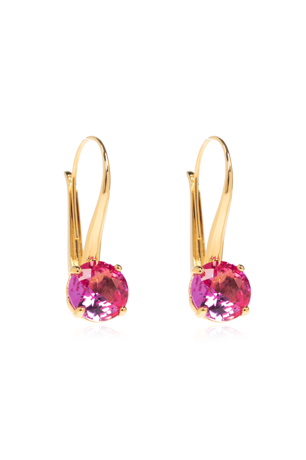 Центральным элементом является крупный круглый кристалл насыщенного розового цвета, который радует своим блеском и привлекает внимание. Кристалл аккуратно закреплен в изящной золотой оправе, которая подчеркивает его необыкновенное сияние.