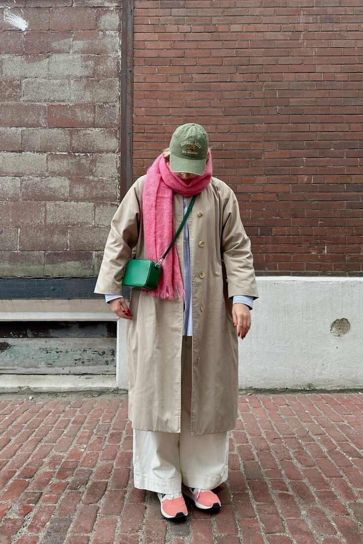 Нейтральная база (например, бежевое пальто или кардиган) + яркий акцент. Это могут быть сумка насыщенного цвета, шарф с рисунком или обувь. Бежевый в таком случае работает как «фоном», который подчёркивает акцент. Согласно источнику: бежевый отлично сочетается с яркими и неожиданные оттенками: «punchier hues, like pinks and terracotta».