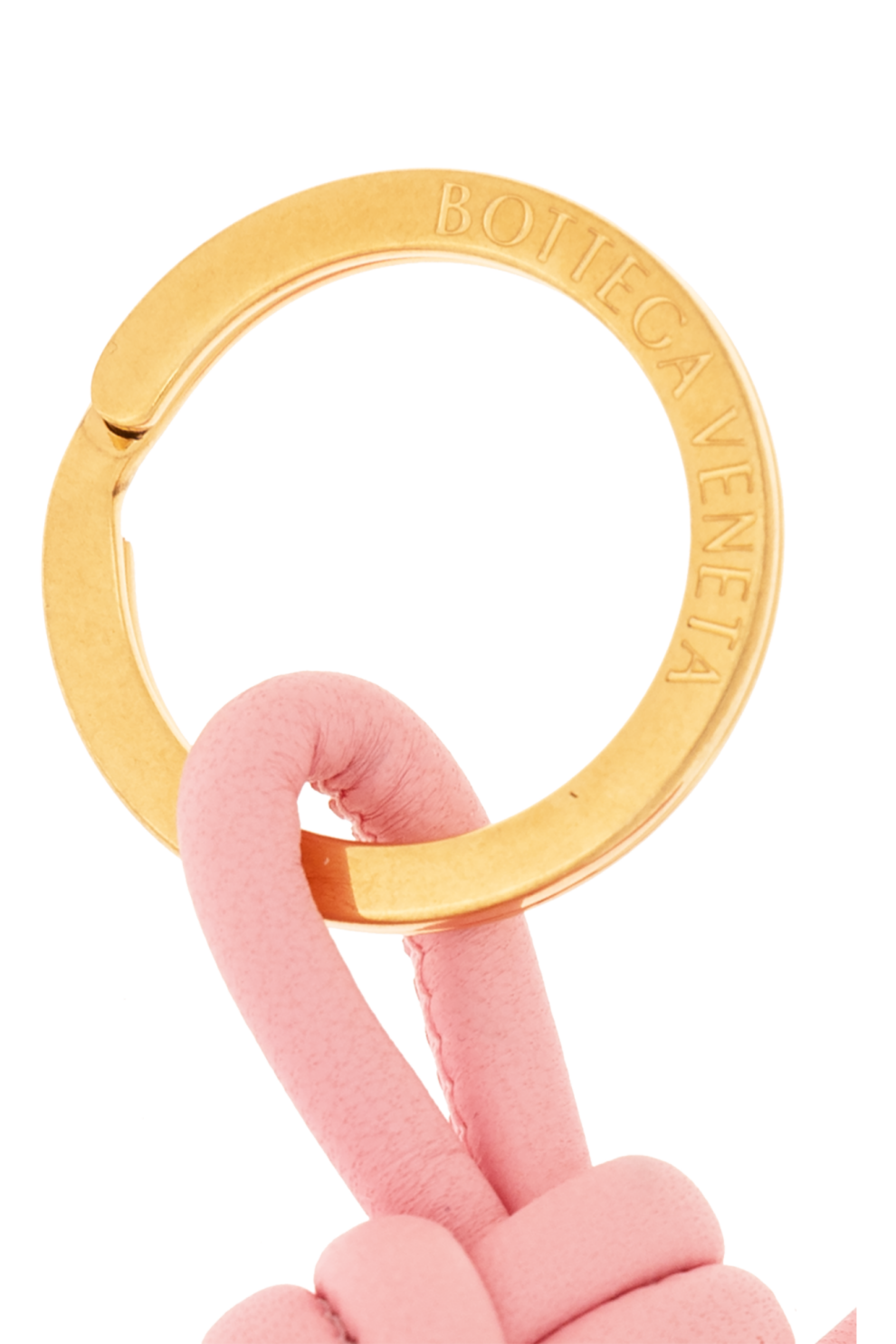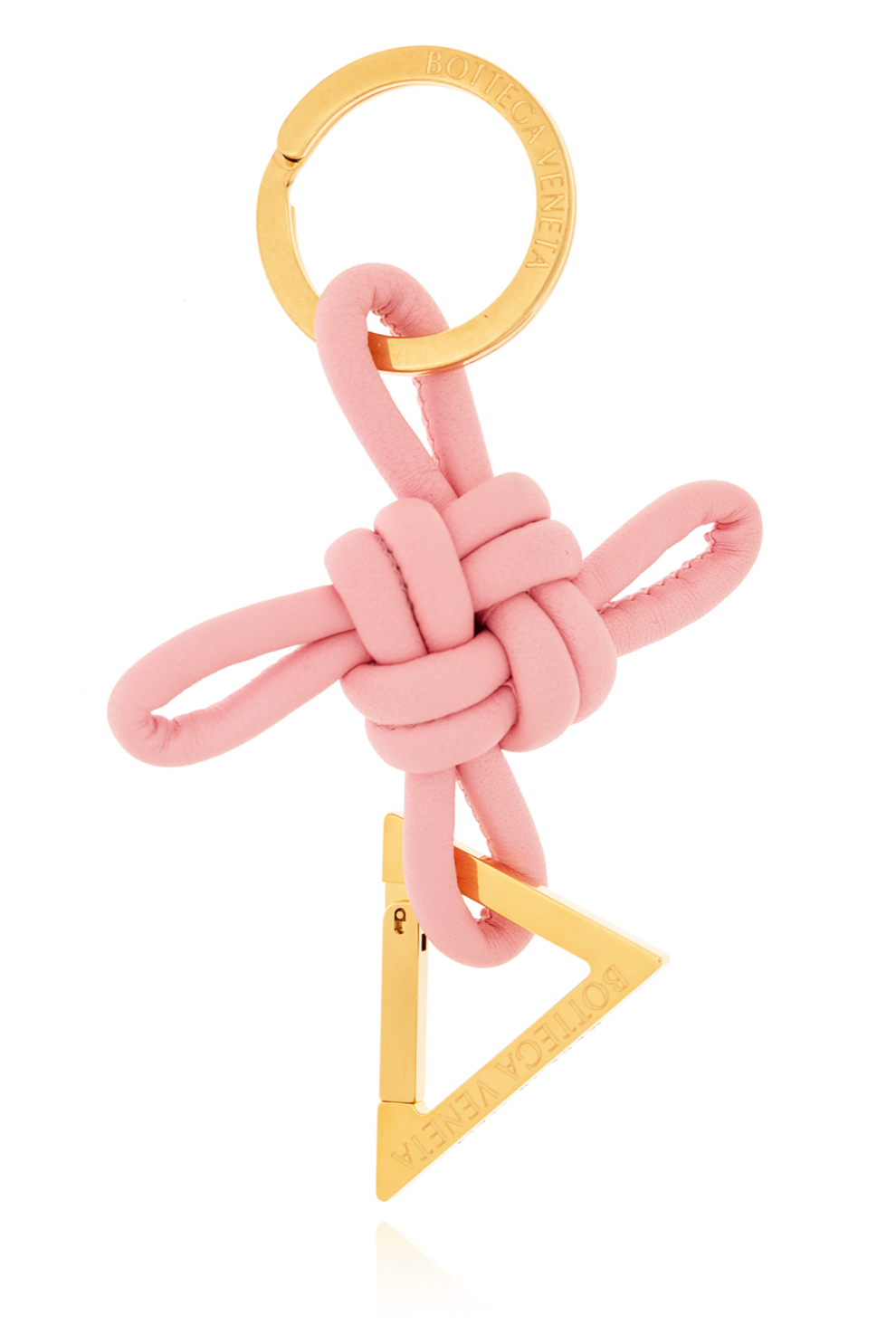 Характерное переплетение и декоративная кожаная тесьма отсылают к культовому наследию Bottega Veneta, превращая небольшой аксессуар в выразительный объект стиля. С одной стороны — фирменный карабин в узнаваемой треугольной форме, с другой — классическое металлическое кольцо, обеспечивающее удобство и универсальность в использовании. Тонко выгравированный логотип бренда служит ненавязчивым знаком исключительного качества.