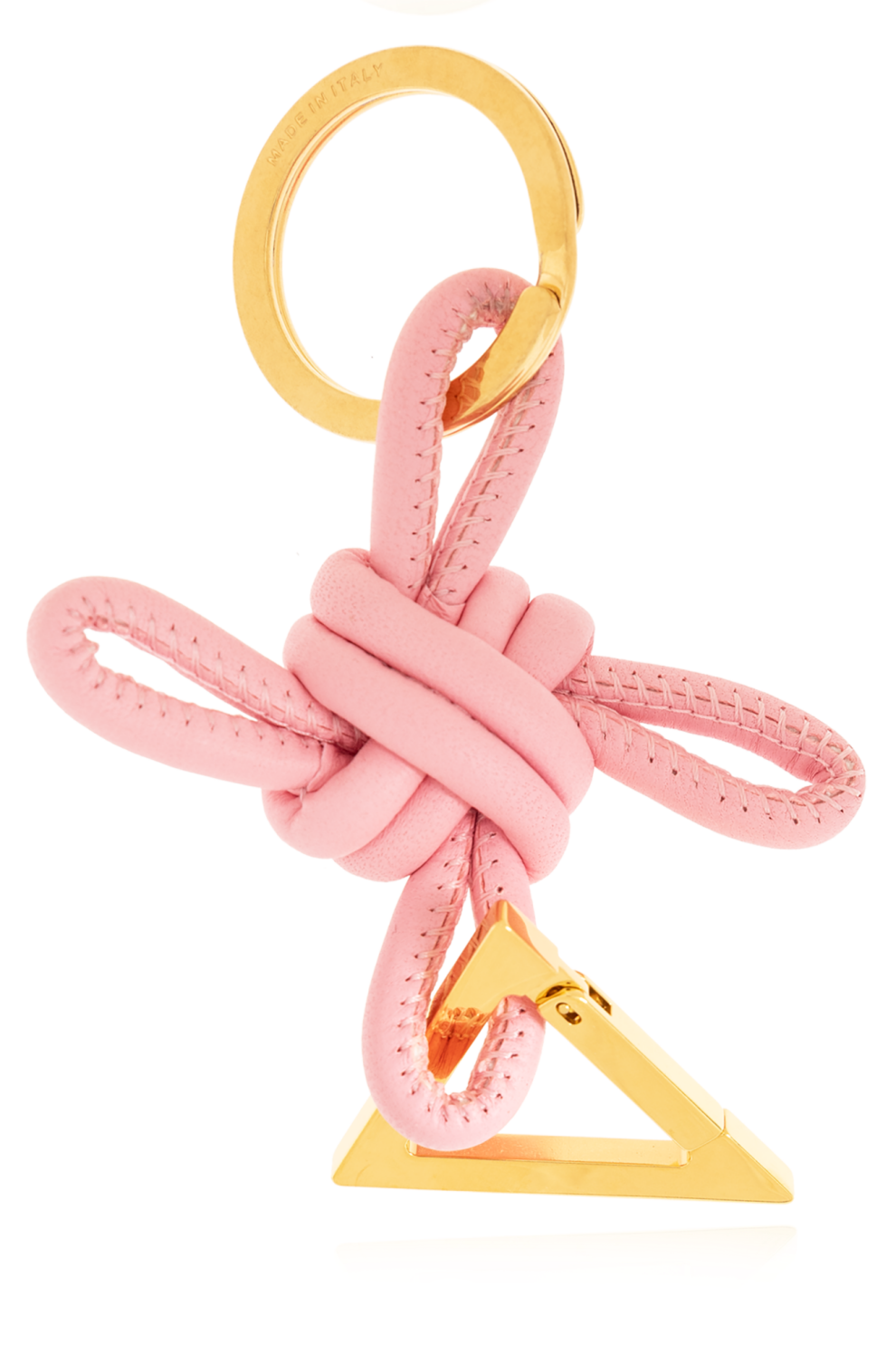 Изысканный брелок Bottega Veneta Double Knot — утончённая интерпретация фирменного минимализма бренда, где функциональность возведена в ранг дизайнерского жеста. Брелок выполнен из мягкой натуральной кожи наппа в нежном розовом оттенке, который подчёркивает его современную элегантность и тактильную роскошь.