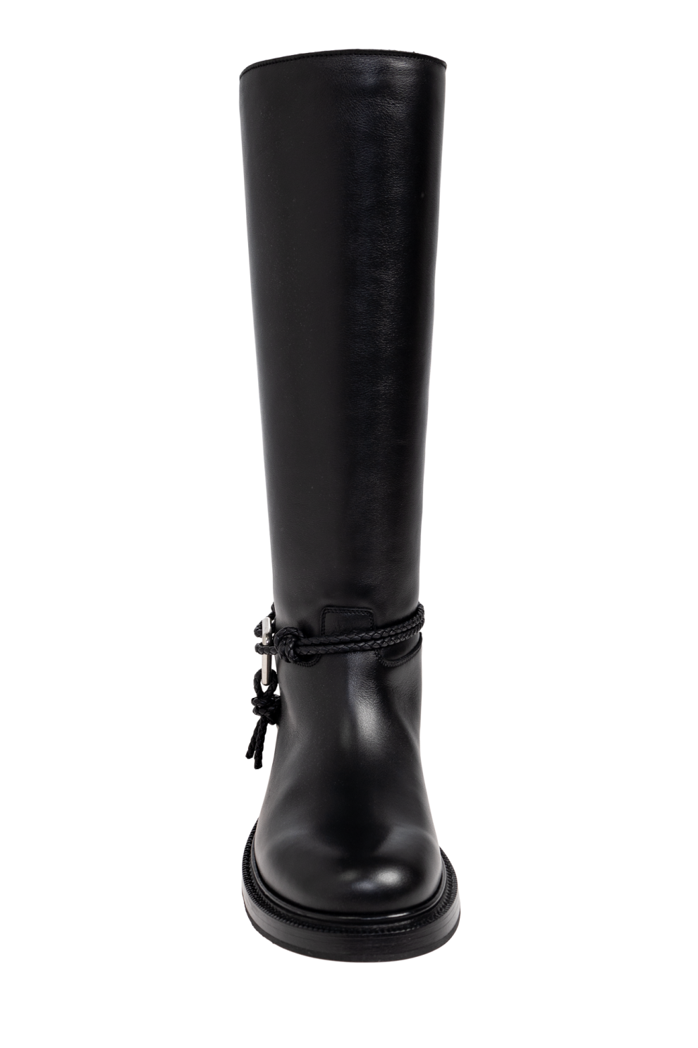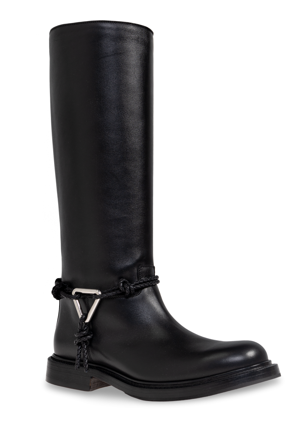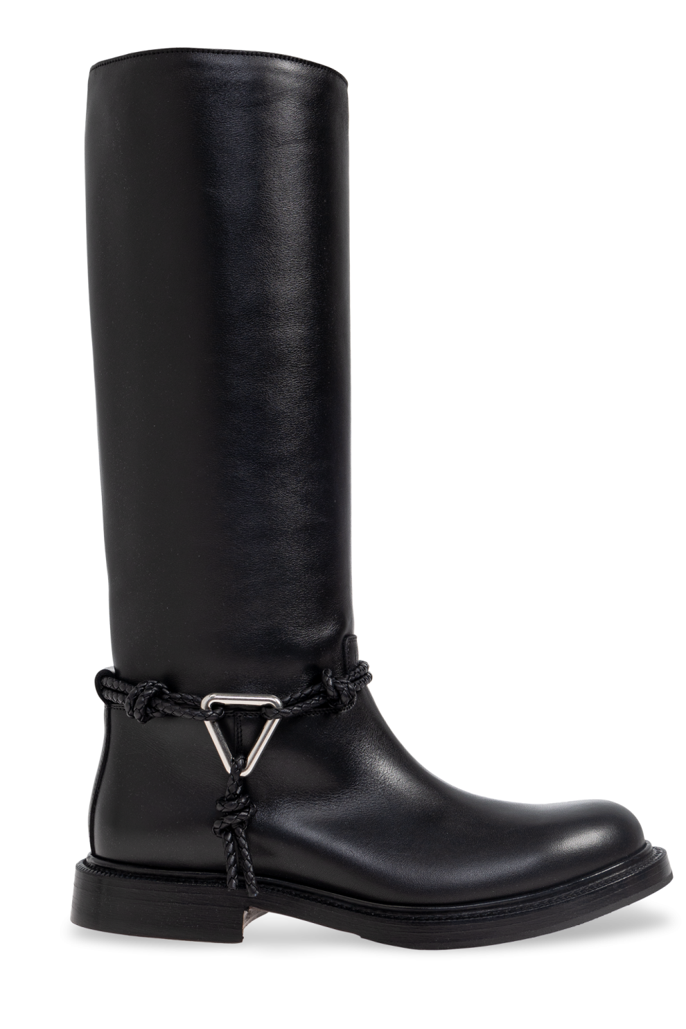 Особый дизайнерский акцент — декоративный шнур, обвивающий нижнюю часть голенища и украшенный серебряной пряжкой с характерной треугольной формой. Этот элемент не только узнаваемый знак бренда, но и благородный штрих, подчёркивающий уникальность и статус модели.