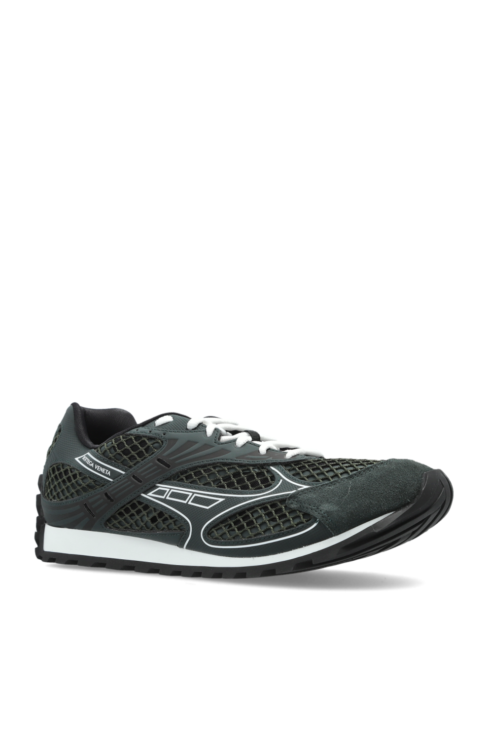 Белые графические элементы и аккуратная строчка добавляют визуальной глубины и подчеркивают архитектурность дизайна. Фирменный логотип Bottega Veneta, размещенный на язычке, стельке и боковой панели, деликатно акцентирует статус и вневременную привлекательность модели.