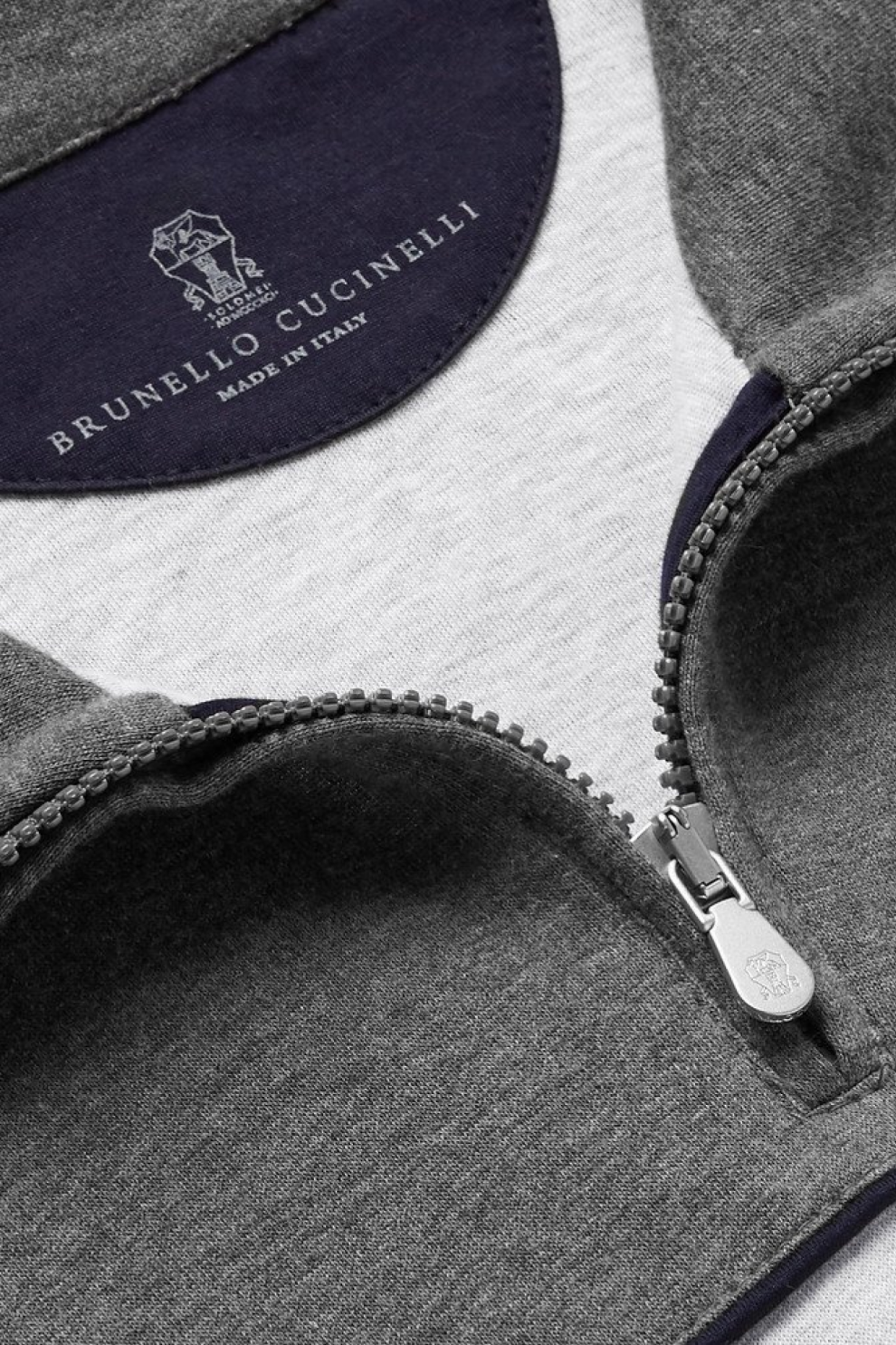 Мужской свитшот Brunello Cucinelli с полу-молнией (half-zip) из меланжевого джерси — воплощение утончённого комфорта и безупречного итальянского мастерства, где спортивная функциональность гармонично сочетается с эстетикой тихой роскоши.