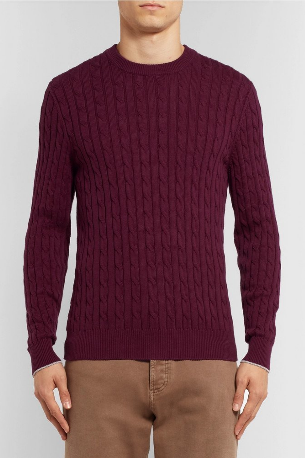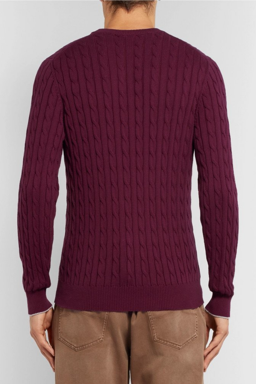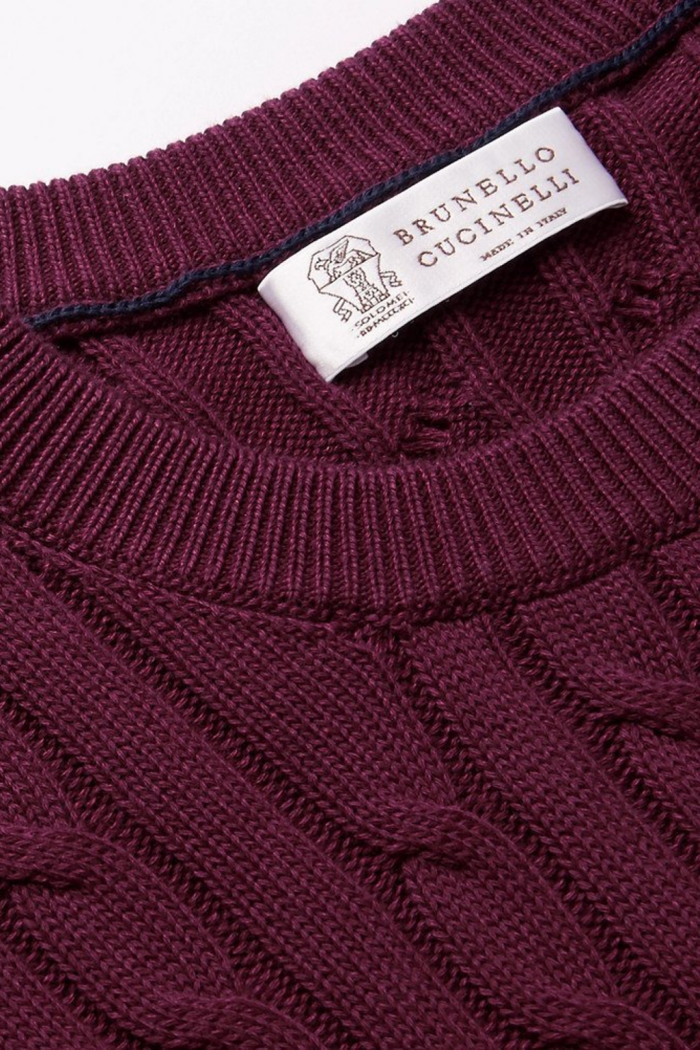 Облегающий джемпер Brunello Cucinelli — идеальное решение для межсезонья. Он создан из чистого хлопка с классическим узором «косы». Модель отлично пропускает воздух, сохраняя при этом тепло, а прилегающие манжеты идеально держат форму, обеспечивая максимальный комфорт. Элегантная классика в современном исполнении.