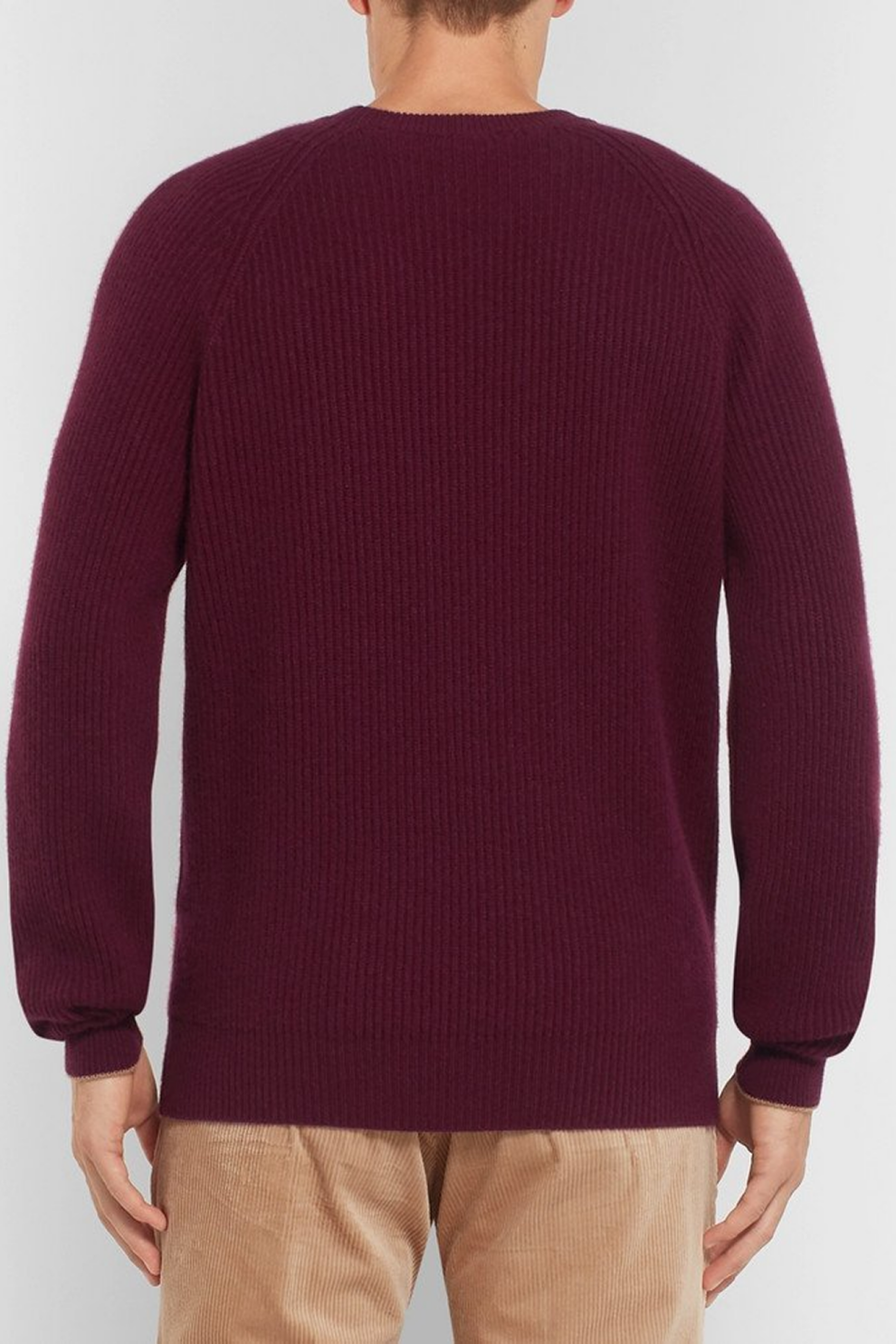 Этот мужской джемпер выполнен из роскошного кашемира с ребристой вязкой, которая подчёркивает текстуру материала и придаёт изделию элегантную динамику. Насыщенный бордовый оттенок с деликатными нюансами делает модель выразительной, но при этом легко сочетаемой — как с денимом, так и с нейтральной классикой. Идеальный пример сдержанной роскоши для повседневных образов.