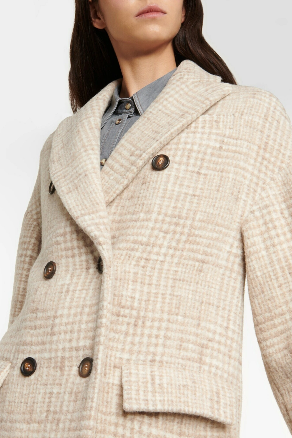 Пальто из смесовой альпаки Brunello Cucinelli с узором Prince of Wales