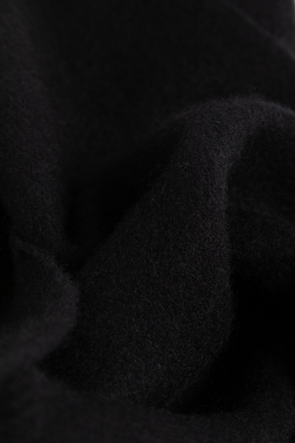 Глубокий черный оттенок, насыщенный и благородный, придаёт аксессуару утончённый шарм и делает его универсальным элементом гардероба — как женского, так и мужского. Классическая прямоугольная форма и декоративная бахрома создают идеальный баланс между строгостью и непринуждённостью.