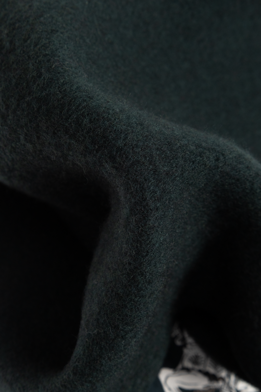 Глубокий зеленый оттенок, насыщенный и благородный, придаёт аксессуару утончённый шарм и делает его универсальным элементом гардероба — как женского, так и мужского. Классическая прямоугольная форма и декоративная бахрома создают идеальный баланс между строгостью и непринуждённостью.