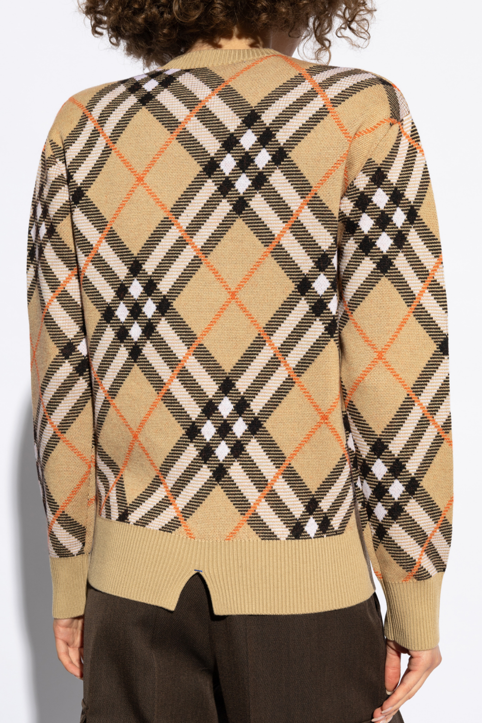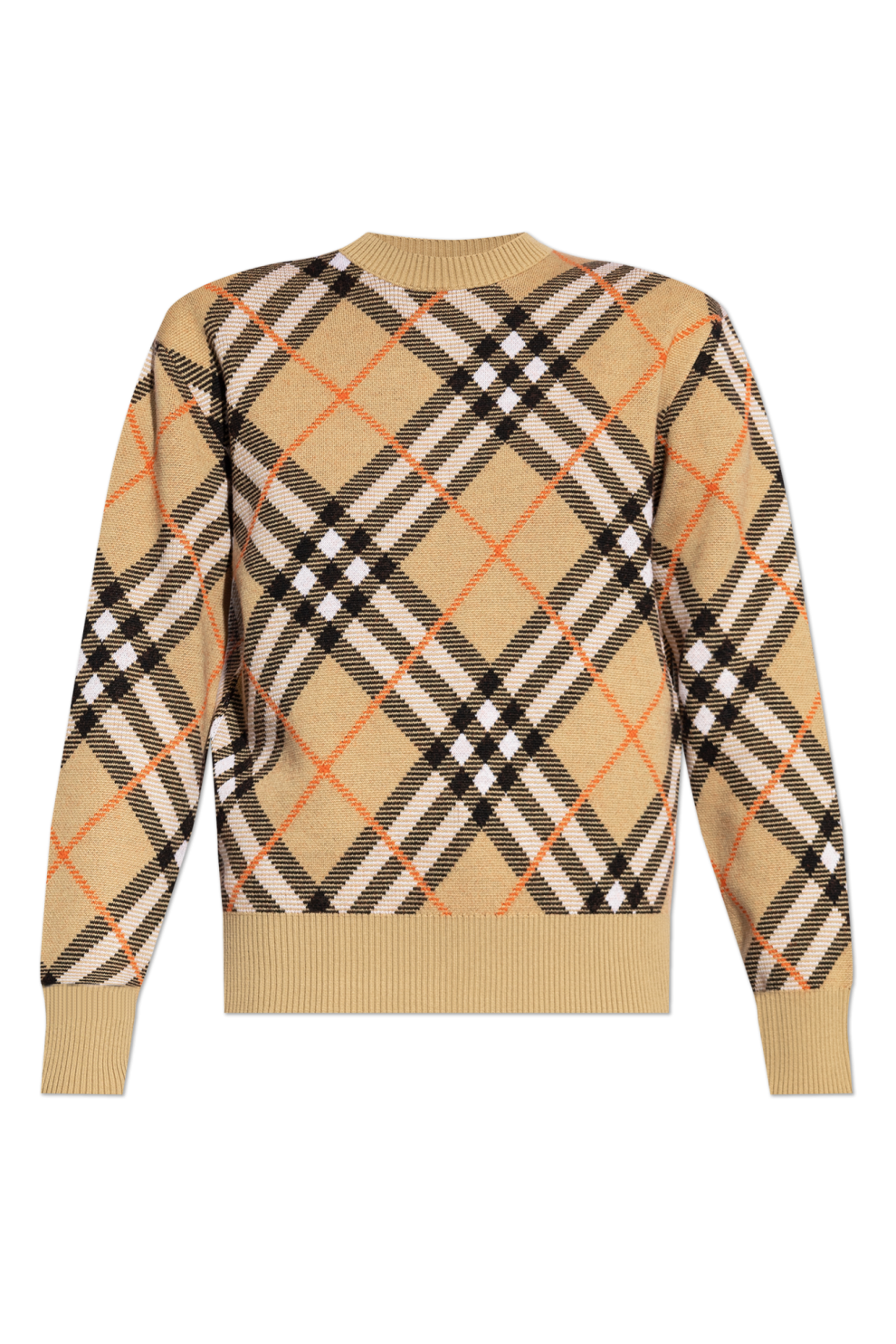 Шерстяной свитер Burberry — воплощение британской утончённой элегантности, где каждая деталь продумана до совершенства. Его нежный бежевый оттенок гармонично дополняет классический клетчатый рисунок, оживлённый контрастными акцентами чёрного, белого и оранжевого. Такой дизайн делает свитер одновременно выразительным и сдержанным, подчёркивая ваш изысканный вкус.
