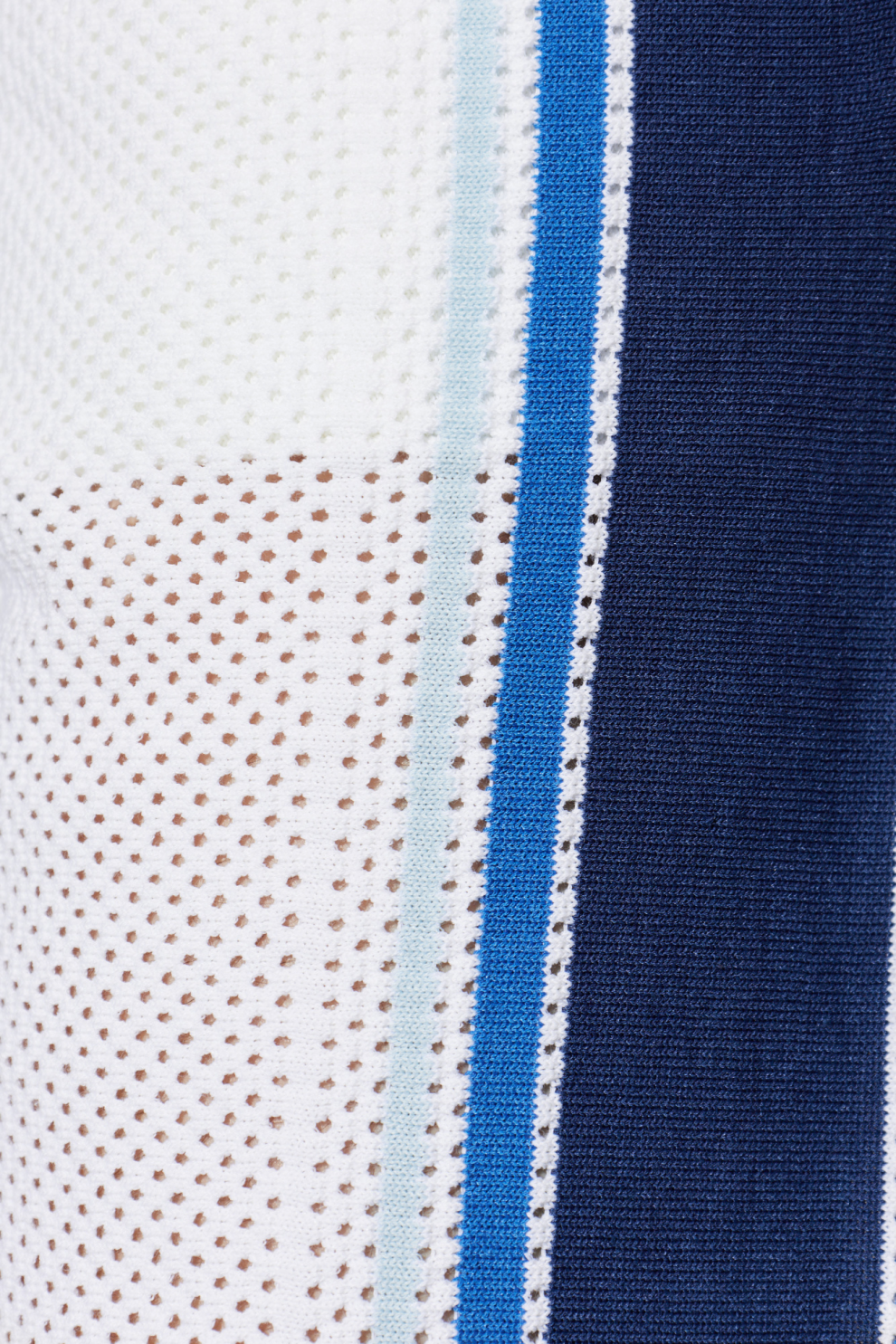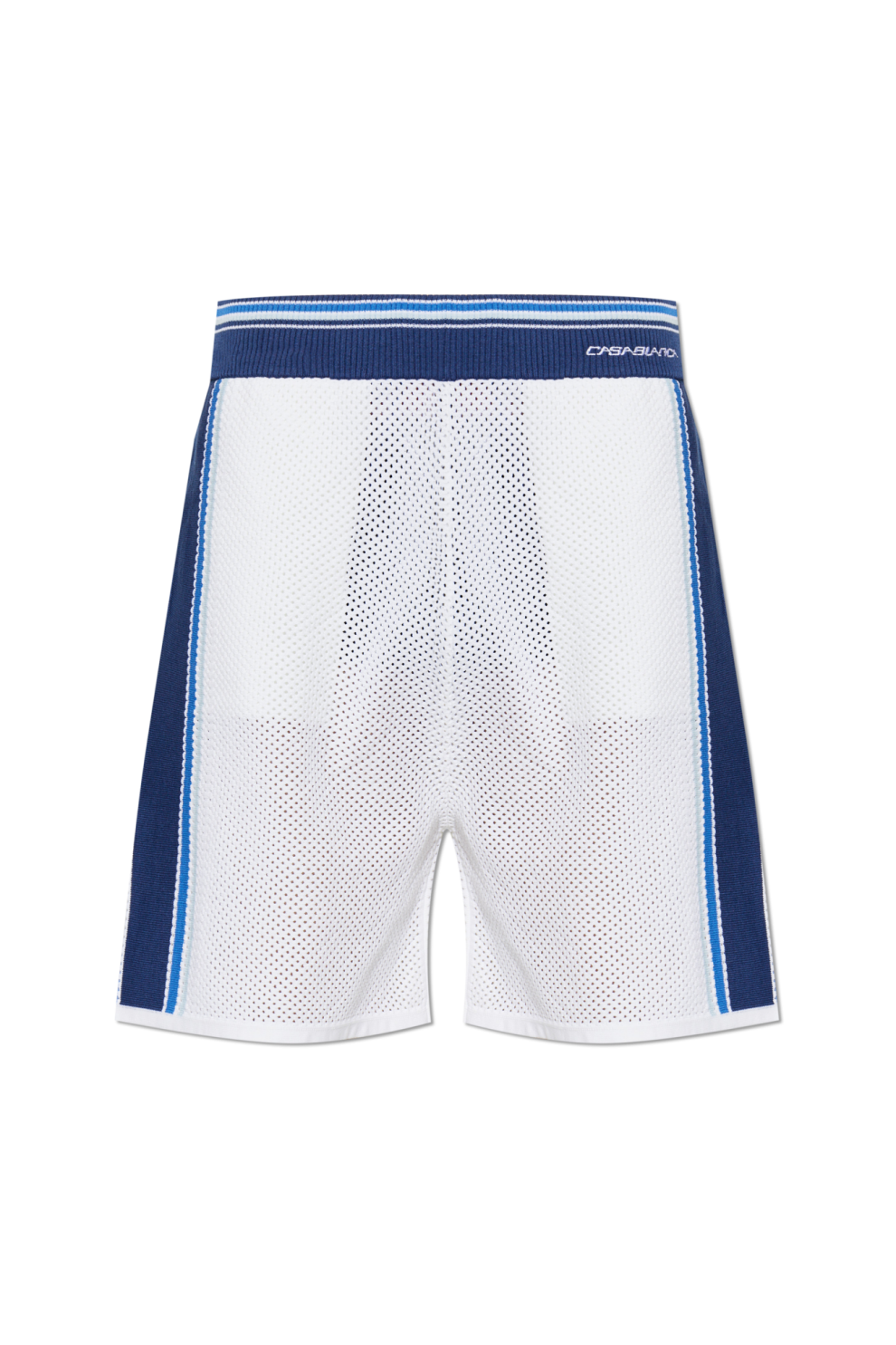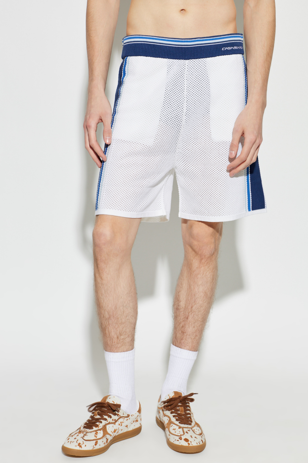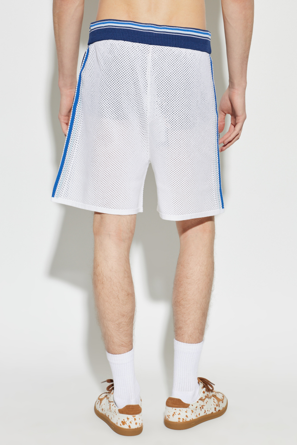 Эластичный пояс темно-синего цвета с двойной белой полосой мягко фиксирует посадку и подчеркивает спортивную эстетику, а аккуратный логотип Casablanca добавляет образу премиальный акцент. Продуманный крой и качественные материалы делают эти шорты не только стильными, но и практичными, объединяя комфорт, воздухопроницаемость и современный дизайн.