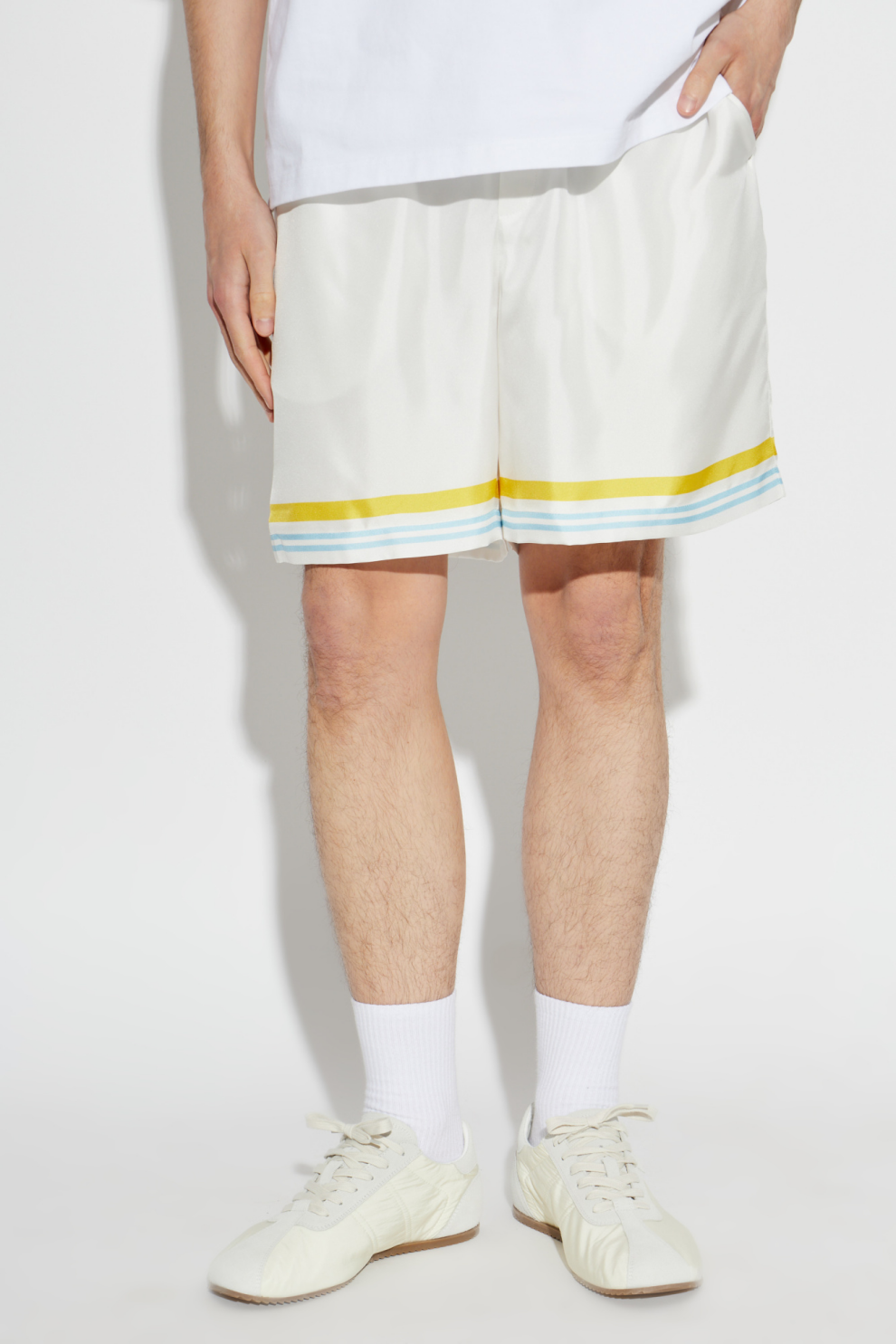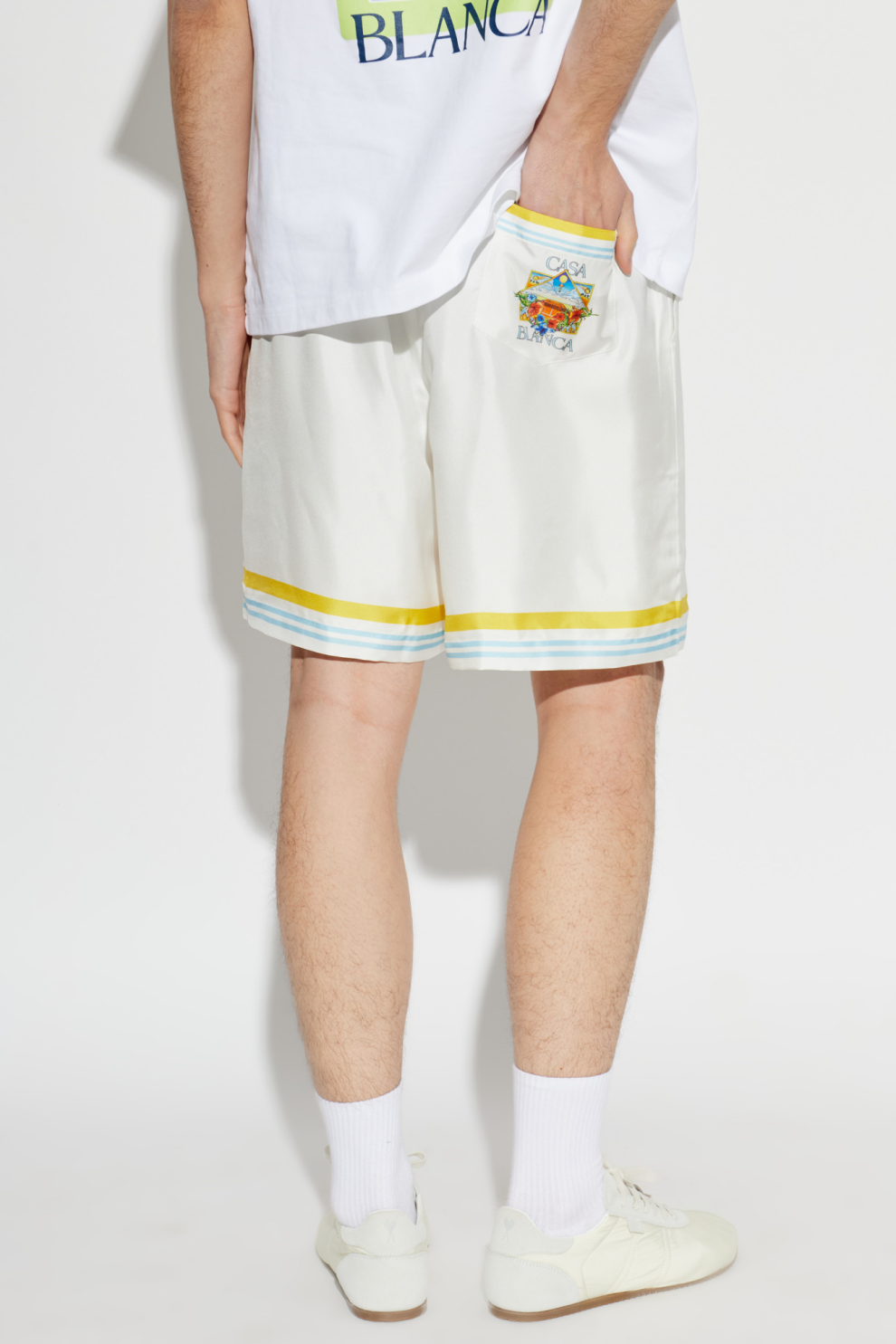 Функциональность модели дополняют удобные боковые карманы и задний карман с ярким принтом «CASABLANCA», который выступает выразительным акцентом и подчеркивает фирменный стиль бренда. Сочетание премиальных материалов, продуманного кроя и выразительного дизайна делает эти шорты универсальным выбором — как для отдыха, так и для стильных повседневных образов.