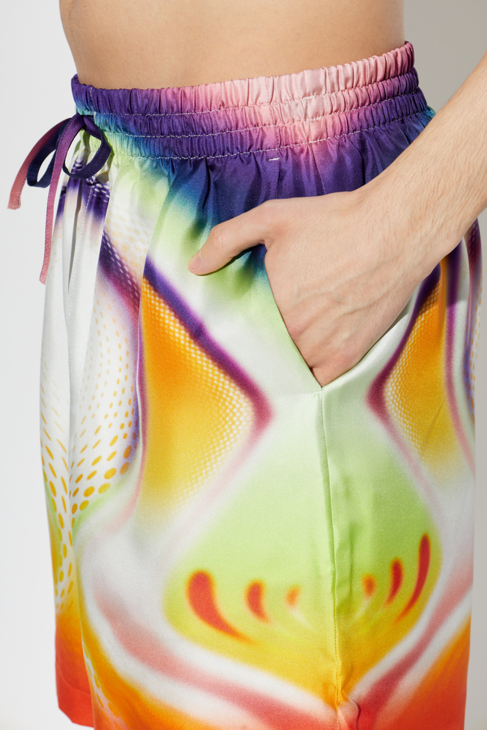 Шорты Casablanca — это квинтэссенция изысканной летней элегантности, созданная для взыскательных мужчин, ценящих комфорт и неповторимый стиль. Классический свободный крой с прямыми штанинами чуть выше колена обеспечивает свободу движений и деликатно подчеркивает фигуру. Искусственный шелк, из которого изготовлены эти шорты, очаровывает своим нежным блеском и невероятной гладкостью.