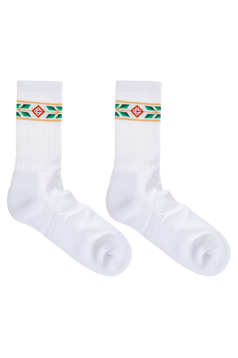 Носки Laurel Sport Socks от Casablanca — это гармоничное сочетание утонченного дизайна и современной элегантности. Классический белый цвет служит изысканным фоном для фирменных акцентов: разноцветных геометрических ромбов и стилизованных листьев на манжете, а также ненавязчивого логотипа бренда, подчеркивающих эксклюзивность изделия.