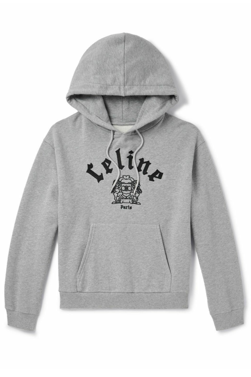 Фокусом дизайна выступает вышитый логотип Celine, выполненный в эффектном готическом шрифте, что добавляет худи графичности и делает её особенным объектом внимания. Контрастная вышивка создаёт баланс между классикой и современным стритвиром, превращая изделие в универсальный statement-piece для повседневного гардероба.