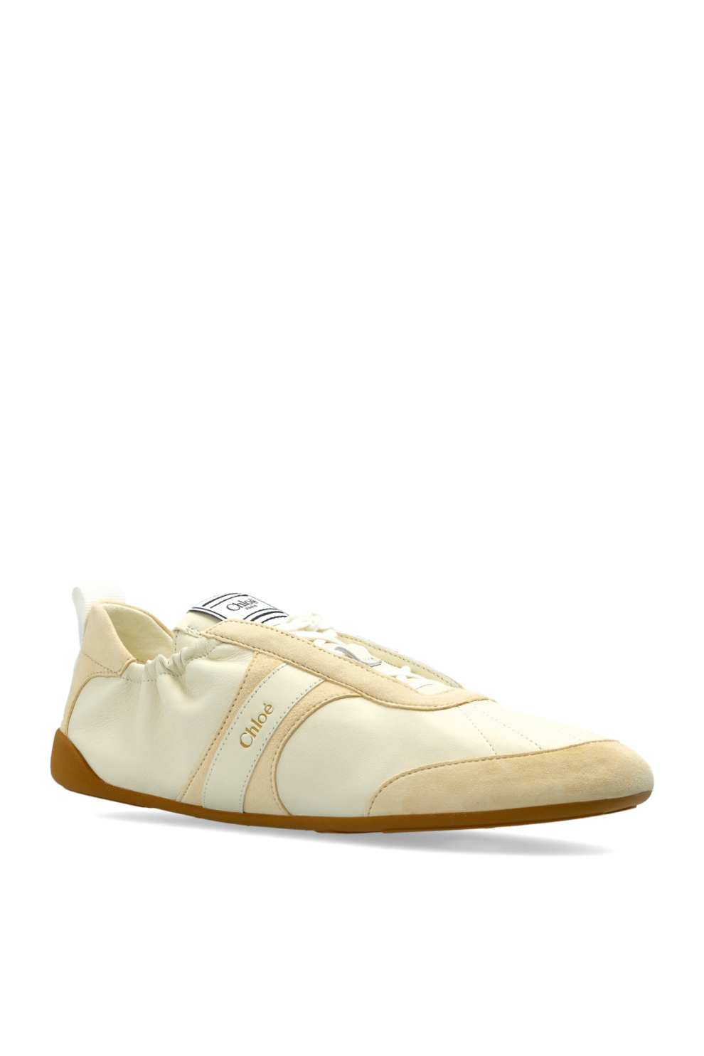 Бежевые кожаные кроссовки-балетки Chloé Kick — квинтэссенция элегантности и минимализма, воплощение современного утилитарного стиля. Их тонкий, слегка закругленный силуэт с низким голенищем и плоской подошвой подчеркивает утончённый характер модели.