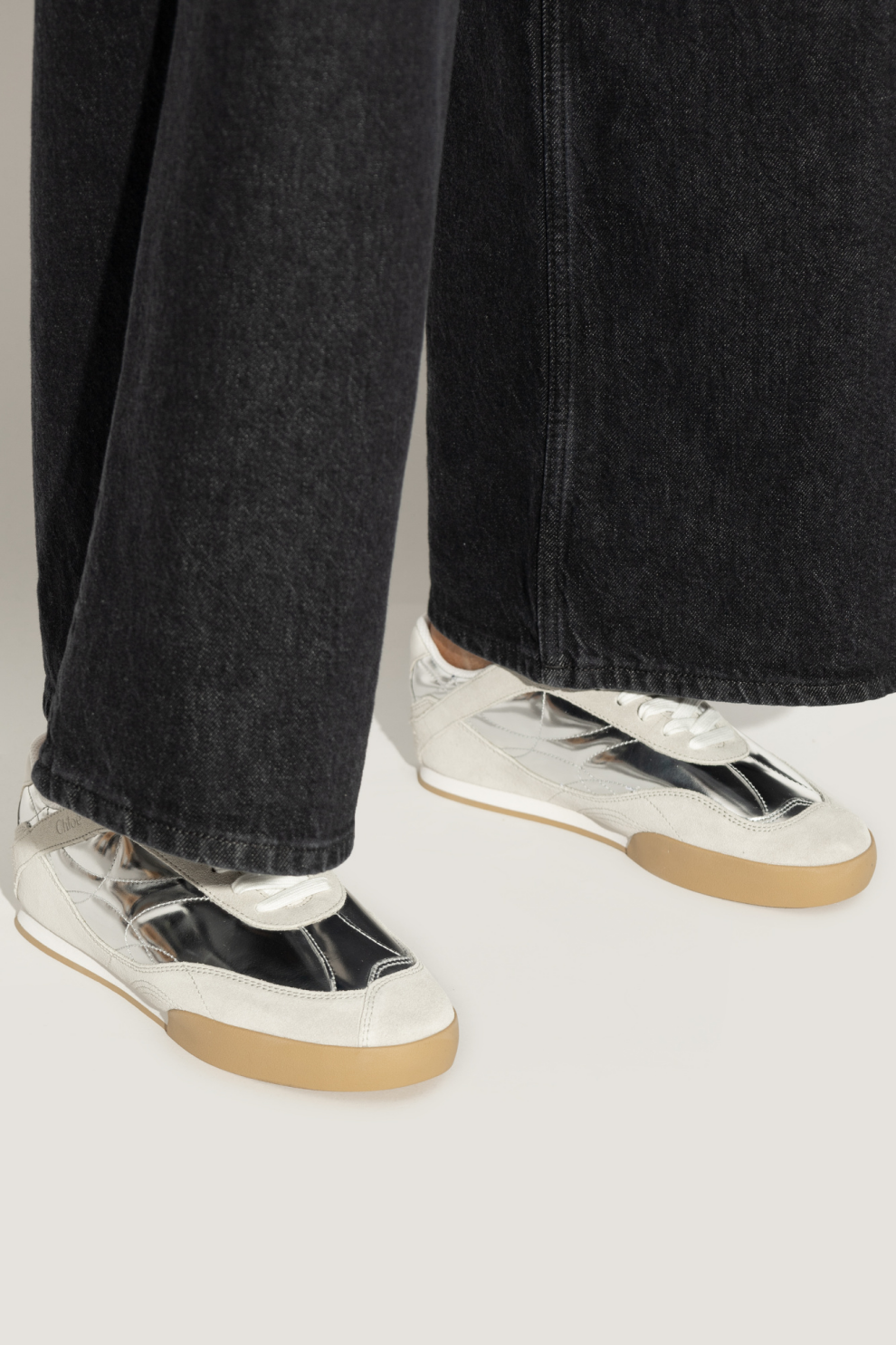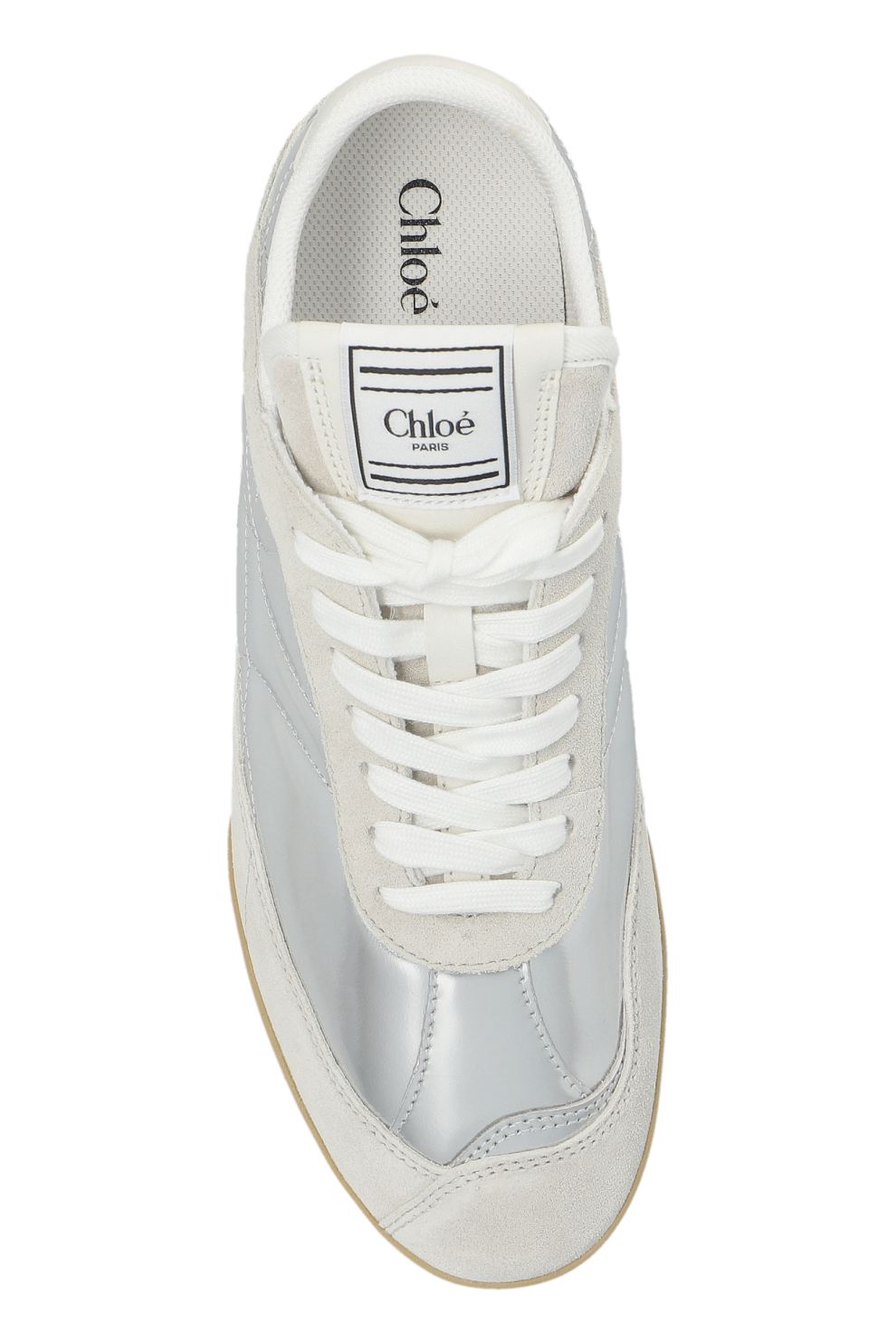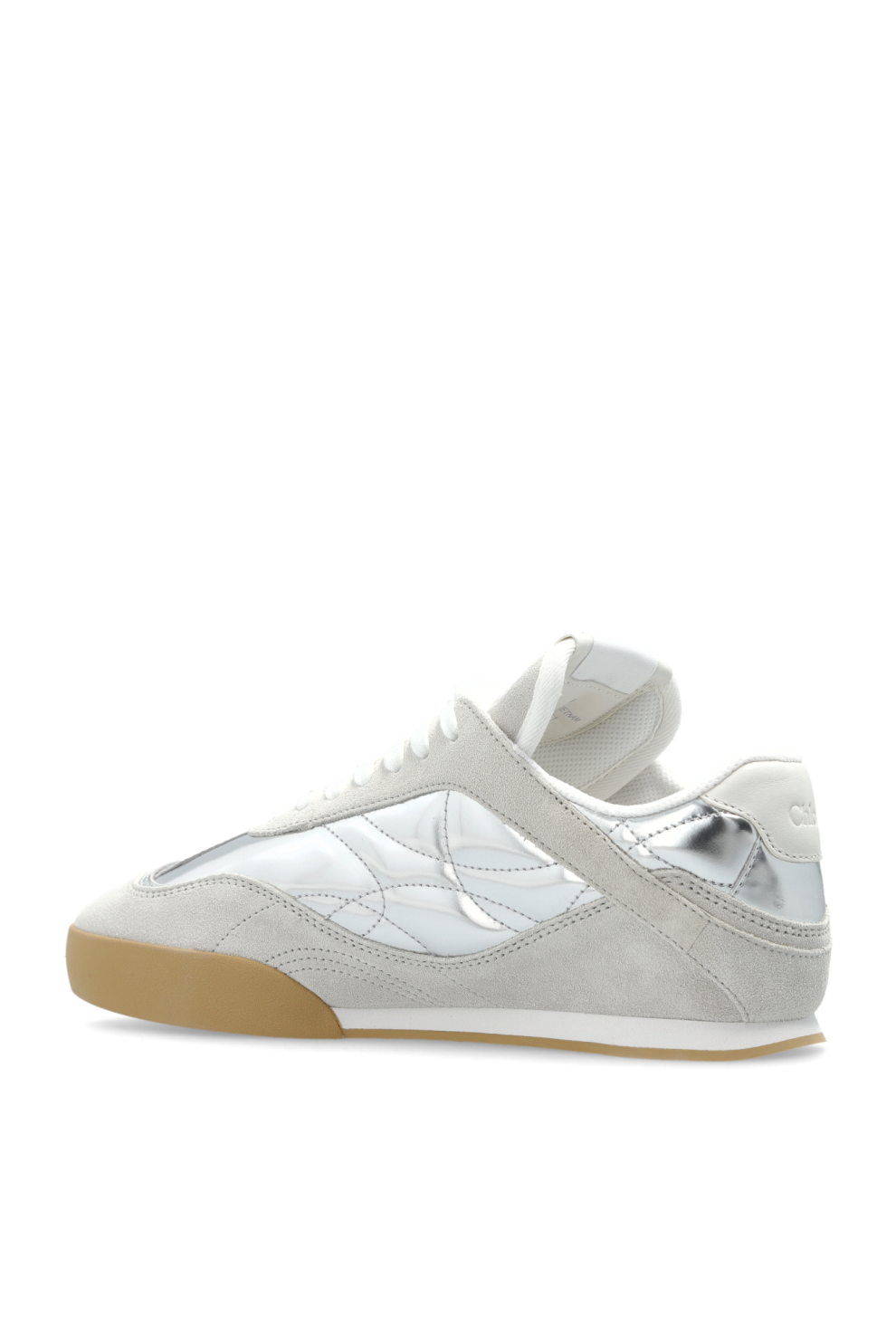 Женские кроссовки Chloé Kick — это гармоничное сочетание вневременной элегантности и современного спортивного дизайна. Модель вдохновлена миром балета и бокса: изящный низкий силуэт подчёркнут блестящей серебристой отделкой и матовыми светло-серыми замшевыми вставками на носке, пятке и шнурках, создавая сдержанно выразительный образ.