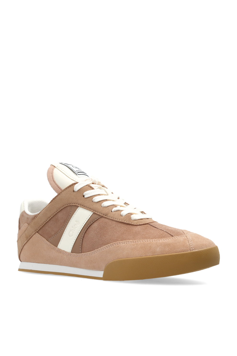 Кроссовки Kick от Chloé в оттенке Woodrose — квинтэссенция современной элегантности и спортивного шика. Их изящный низкий силуэт с закругленным носком гармонично сочетает классический дизайн с нежно-розовым замшевым верхом, дополненным белыми акцентами на язычке, боковой полосе, заднике и шнурках, которые подчёркивают утончённый характер модели.