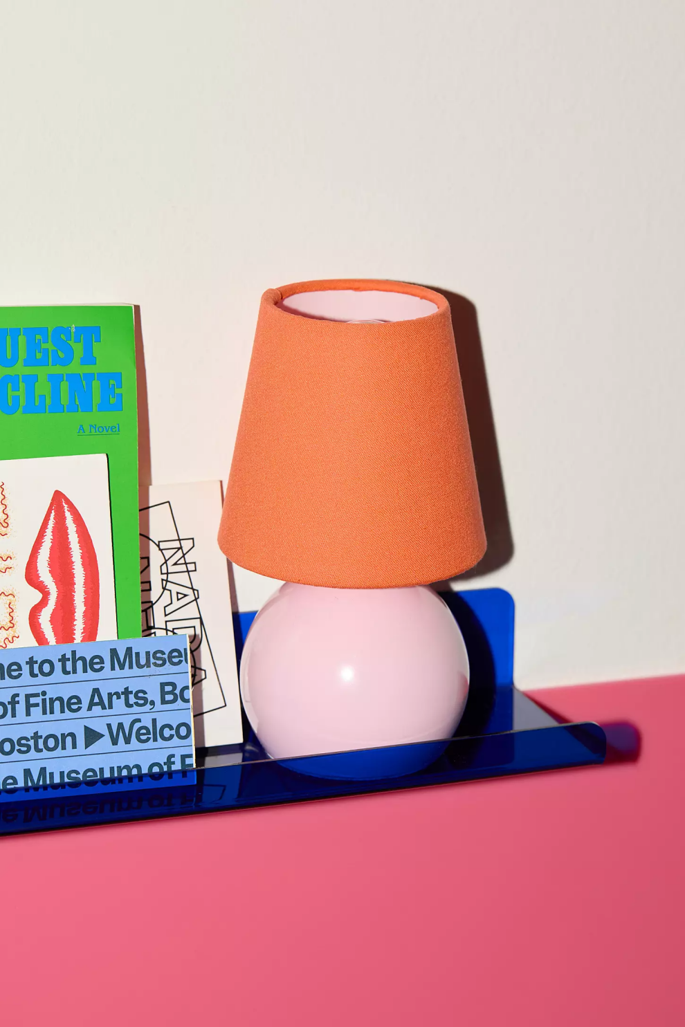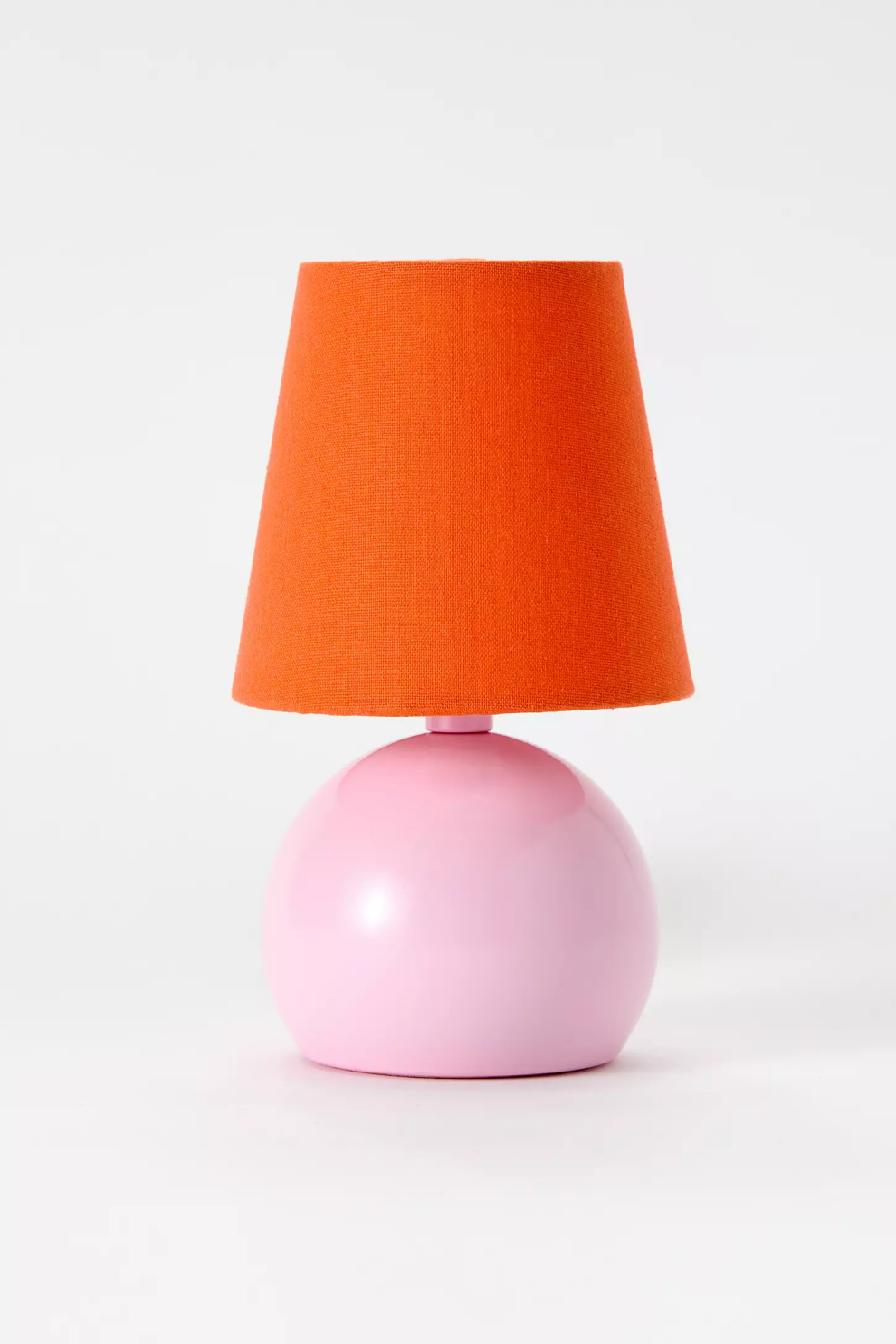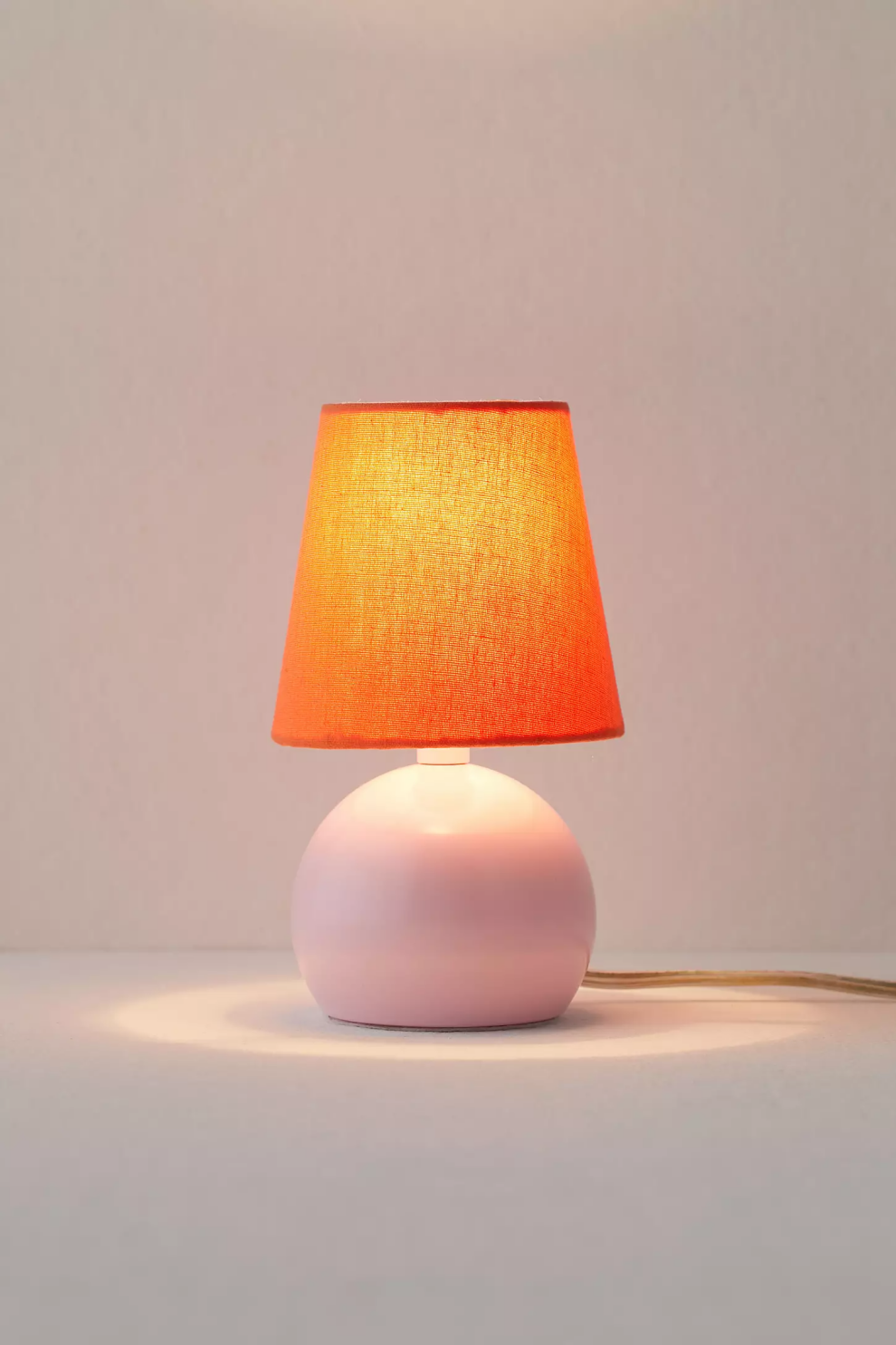 Главная особенность модели — сферическое основание нежно-розового цвета, привлекающее внимание и создающее динамичную композицию. Его дополняет удлинённый плетёный абажур конусообразной формы, выполненный в ярком оранжевом оттенке. Лампа мягко рассеивает свет, создавая уютное настроение в вечернее время.
