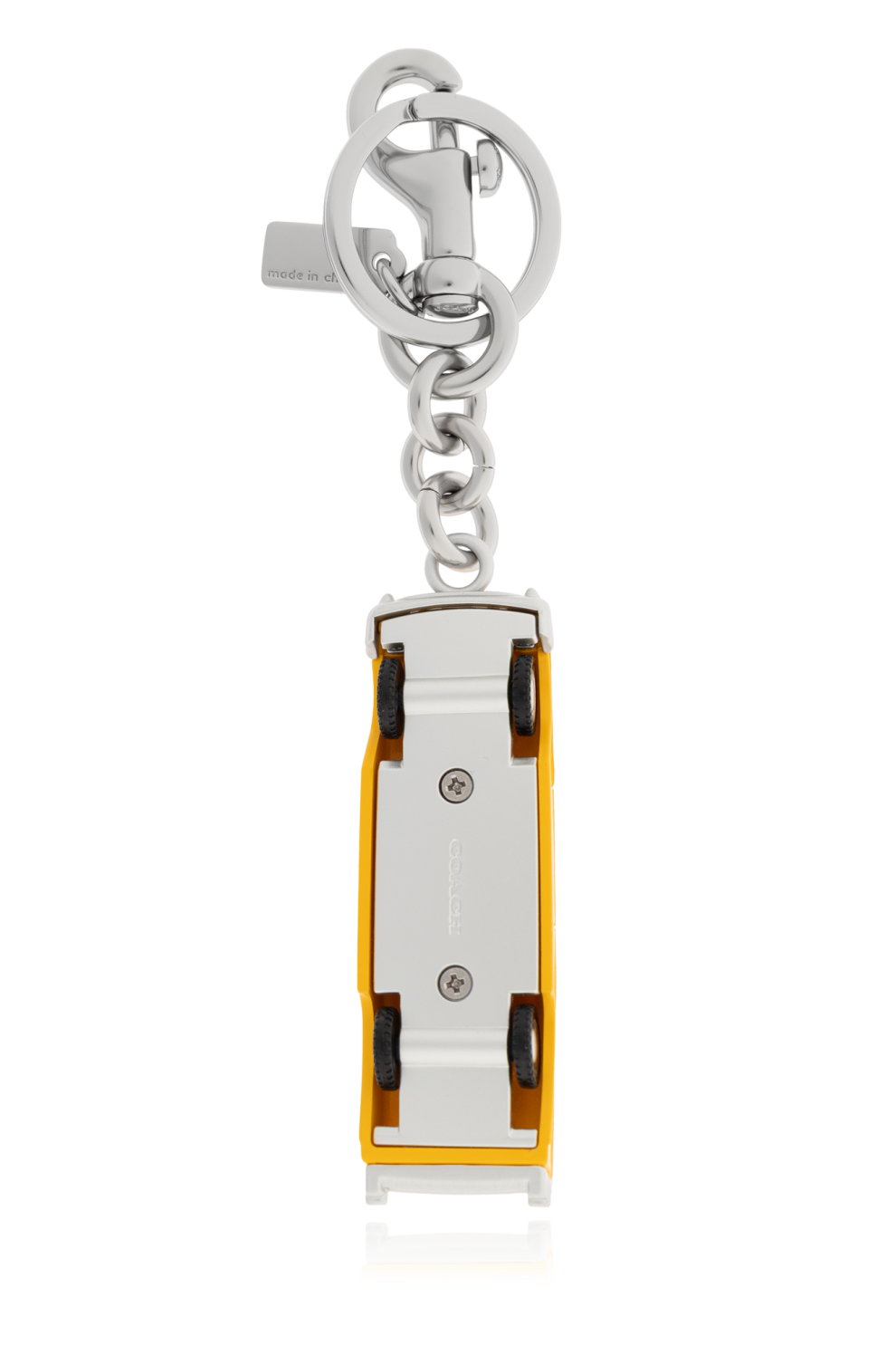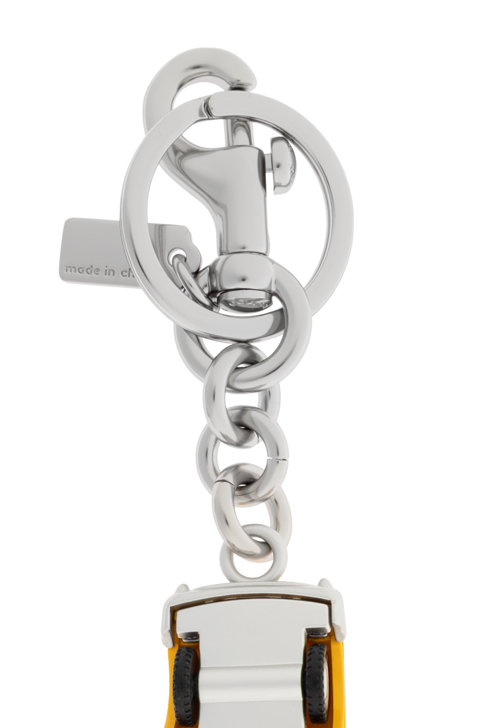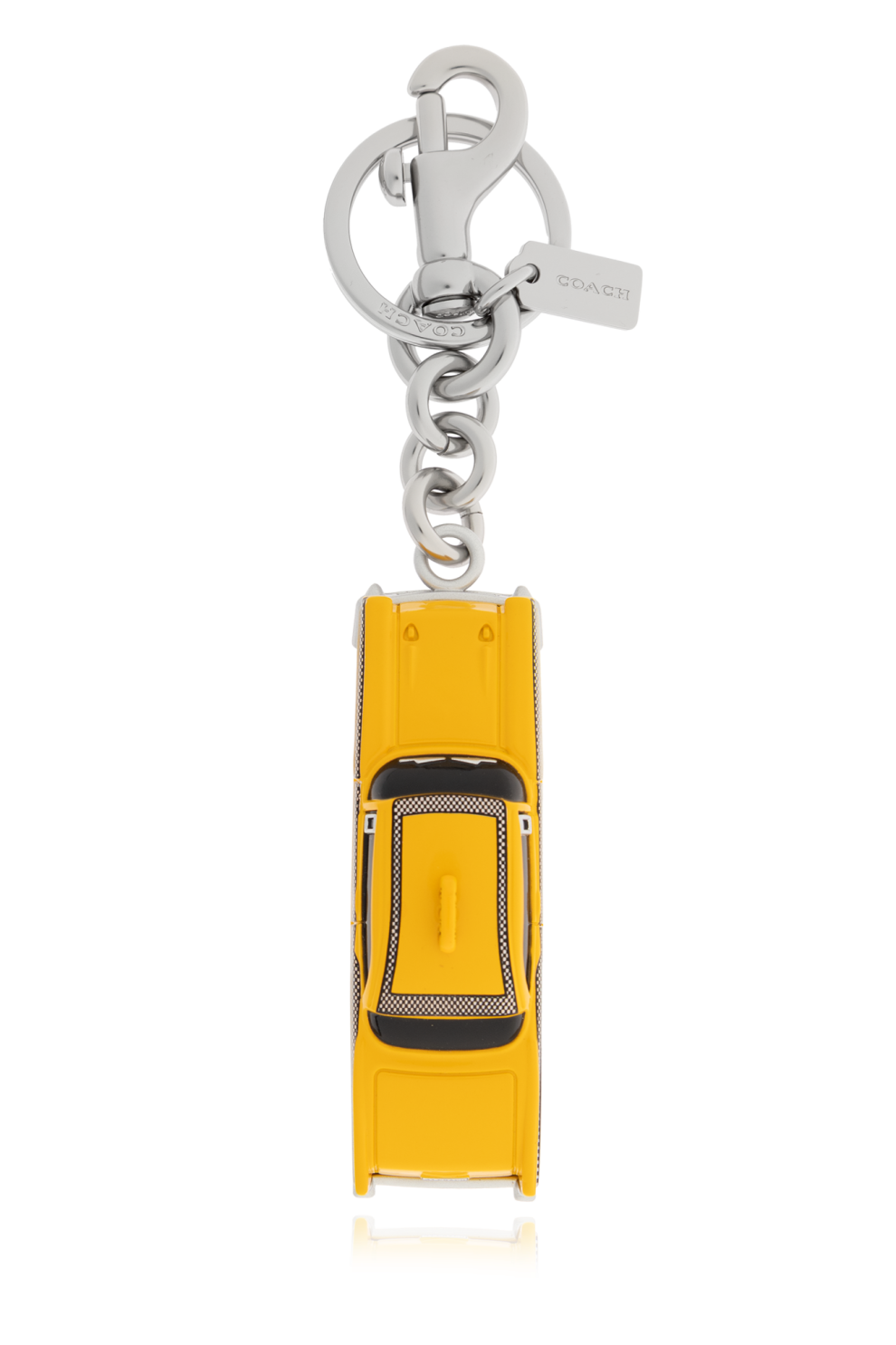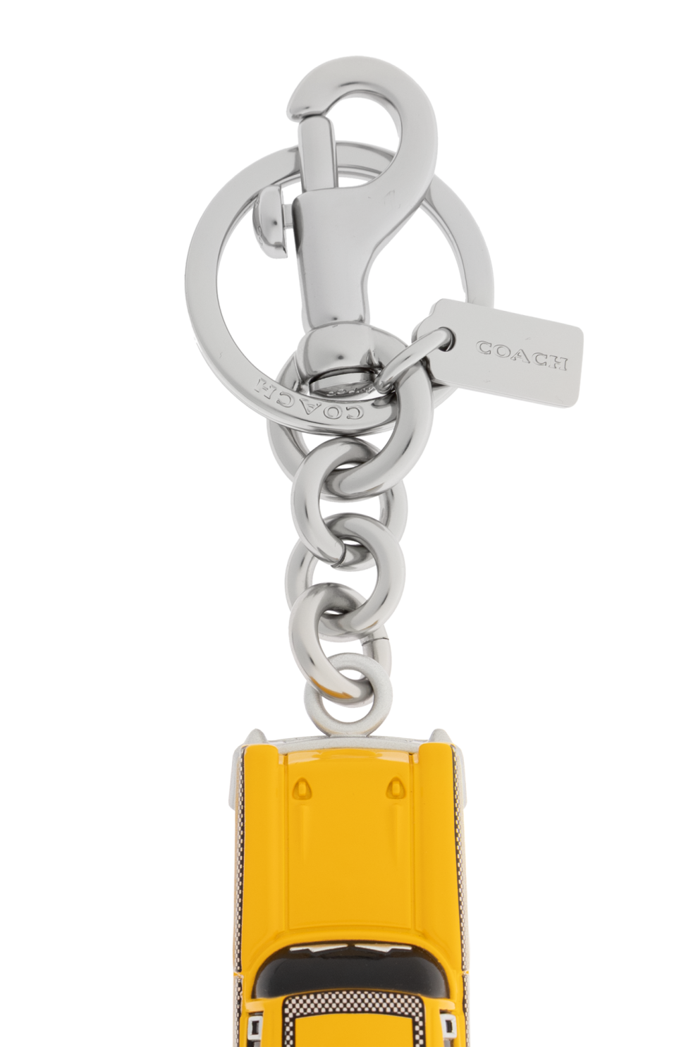 Уникальный брелок с подвеской от известного бренда Coach, воплощающий в себе роскошь и городской стиль. Этот аксессуар в виде модели желтого автомобиля Нью-Йоркского такси не только привлекает внимание, но и излучает элегантность и современность.