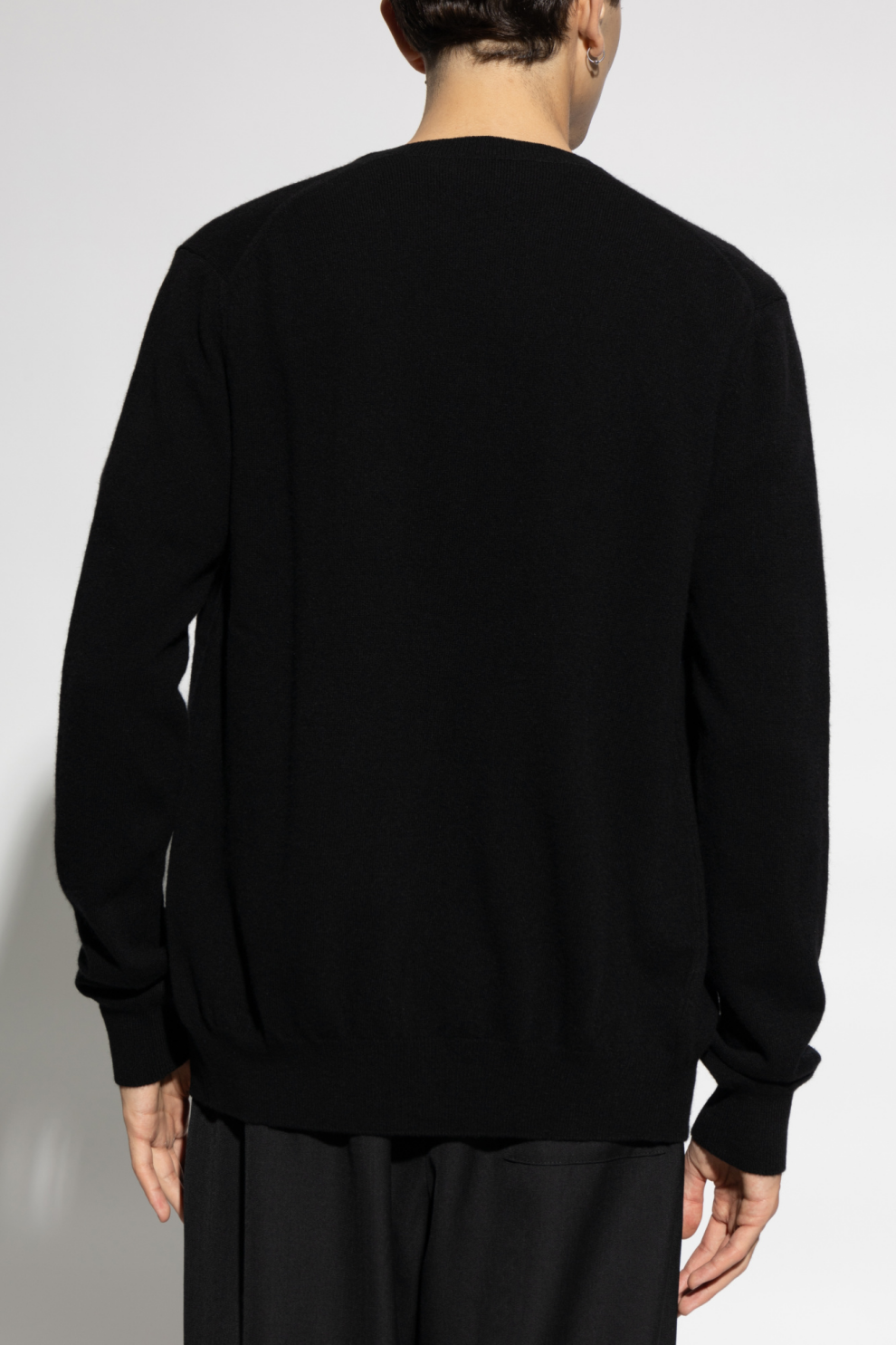 Черный мужской кардиган на пуговицах от Comme des Garçons Play - это воплощение модного совершенства, выполненное из шерсти высочайшего качества, которая обеспечивает не только непревзойденный комфорт, но и долговечность. Классический прямой крой с длинными рукавами и круглым вырезом выгодно подчеркивает фигуру, не стесняя движений.
