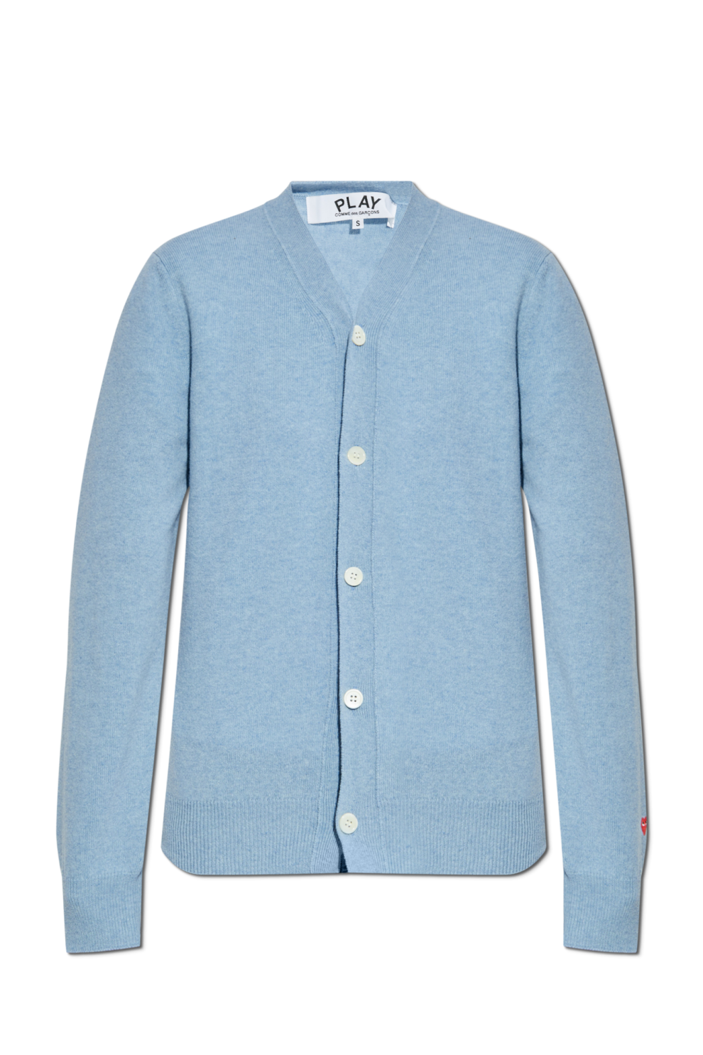 Кардиган с нашивкой-логотипом из эксклюзивной коллекции Comme des Garçons Play. Этот ослепительно-голубой кардиган выполнен из шерсти высочайшего качества, что делает его невероятно мягким и комфортным. Классический крой с длинными рукавами, дополненный белыми пуговицами, — воплощение элегантности и стиля.