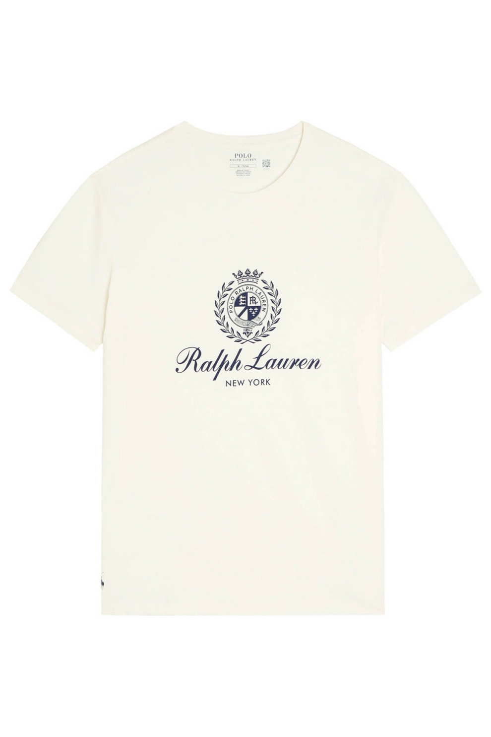 Эта классическая футболка от Polo Ralph Lauren сочетает повседневный комфорт и культовый стиль бренда. Модель выполнена из мягкого хлопкового джерси кремового цвета, приятного к телу и долговечного, с аккуратным ребристым воротом для идеальной посадки.