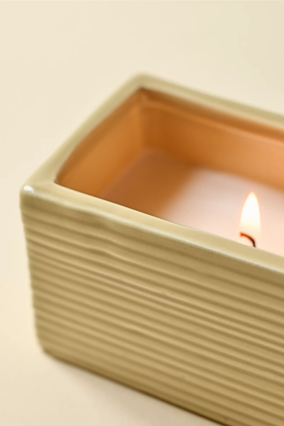 Необычный дизайн превращает свечу в произведение современного искусства, которое не только украшает пространство, но и наполняет его тёплым и уютным ароматом фирменной композиции: солнечное тепло древесины, бальзамическая амбра, бобы тонка и лёгкие ноты травяного сена. Этот аромат создаёт атмосферу комфорта, расслабления и лёгкого шика, добавляя интерьеру изысканности и характерного акцента.