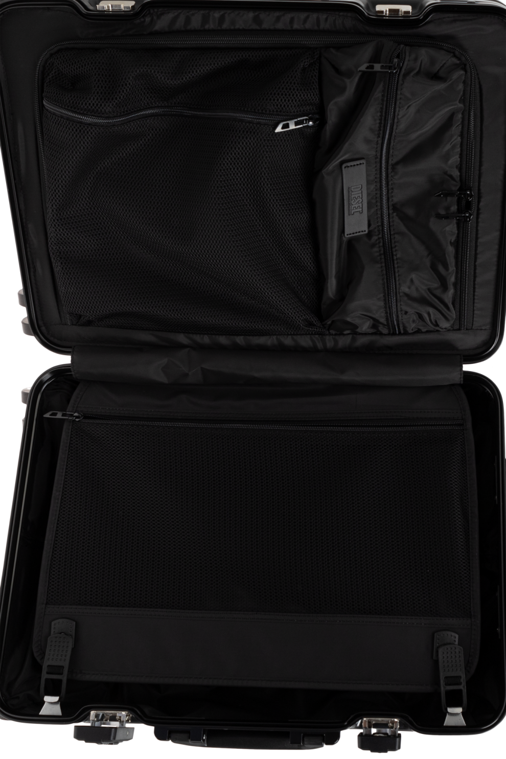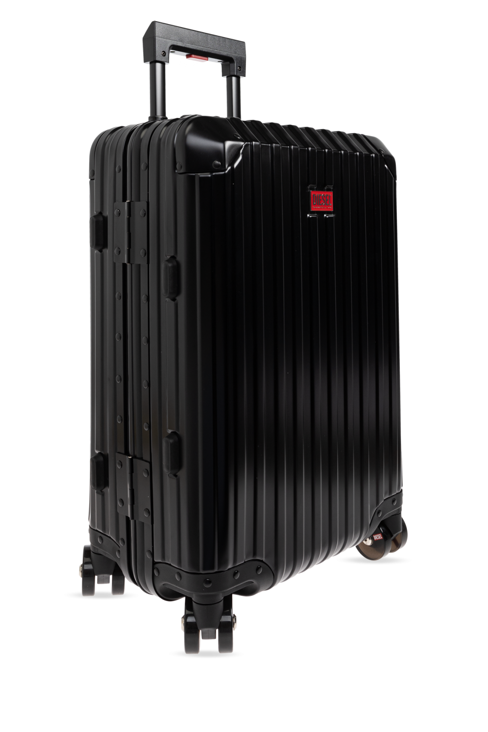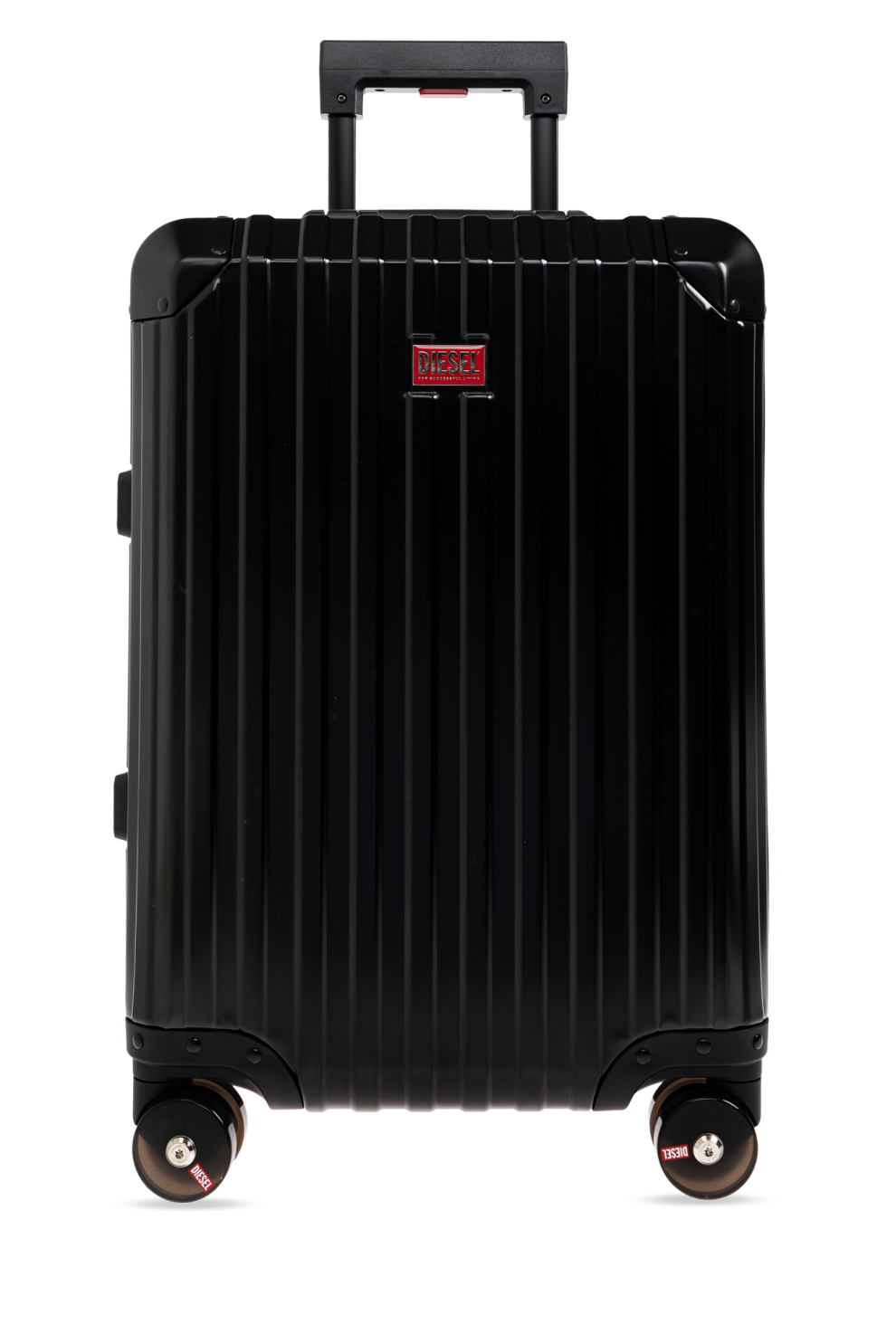 Чемодан Diesel DSL002 в чёрном исполнении — это современная интерпретация классического алюминиевого чемодана. Рифлёная поверхность с вертикальными линиями усиливает прочность конструкции и придаёт чемодану визуальную глубину. Глубокий чёрный цвет подчёркивает универсальность модели, а фирменный логотип DIESEL на фронтальной панели добавляет акцент и узнаваемость.