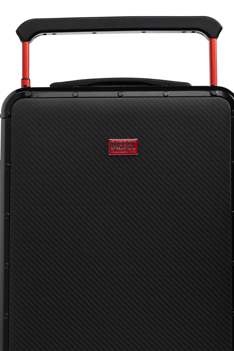 Матовый чёрный корпус с диагональной текстурой карбона и центральным красным логотипом DIESEL формирует узнаваемый и статусный образ.