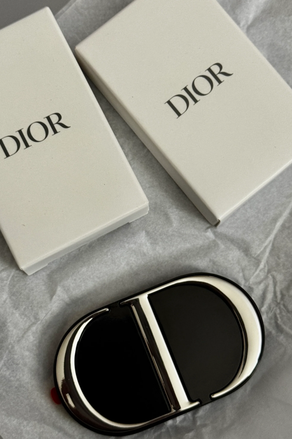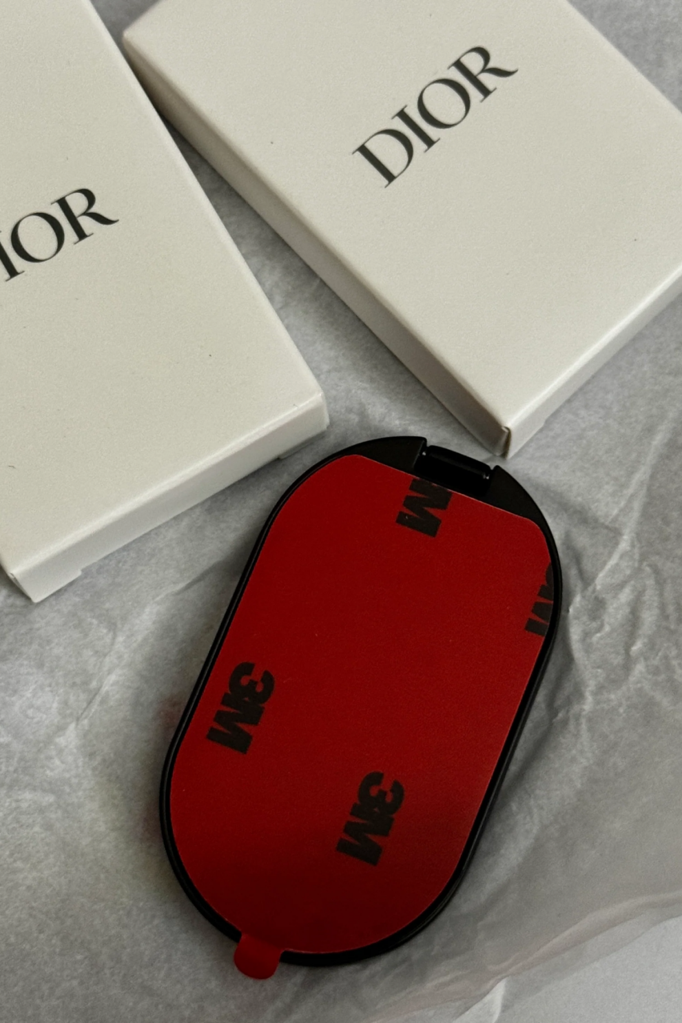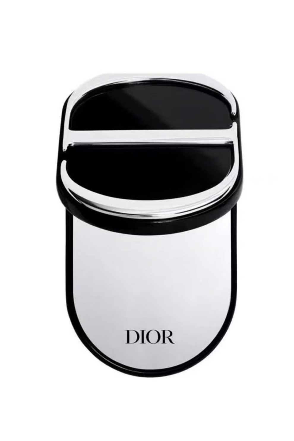 Компактное зеркало-держатель для смартфона от Dior Beauty — это элегантный аксессуар, объединяющий функциональность и фирменную эстетику Дома Dior. Тонкий корпус с лаконичной чёрной отделкой и утончённой овальной формой дополнен изящным серебристым логотипом CD, который превращает аксессуар в выразительную деталь повседневного образа.