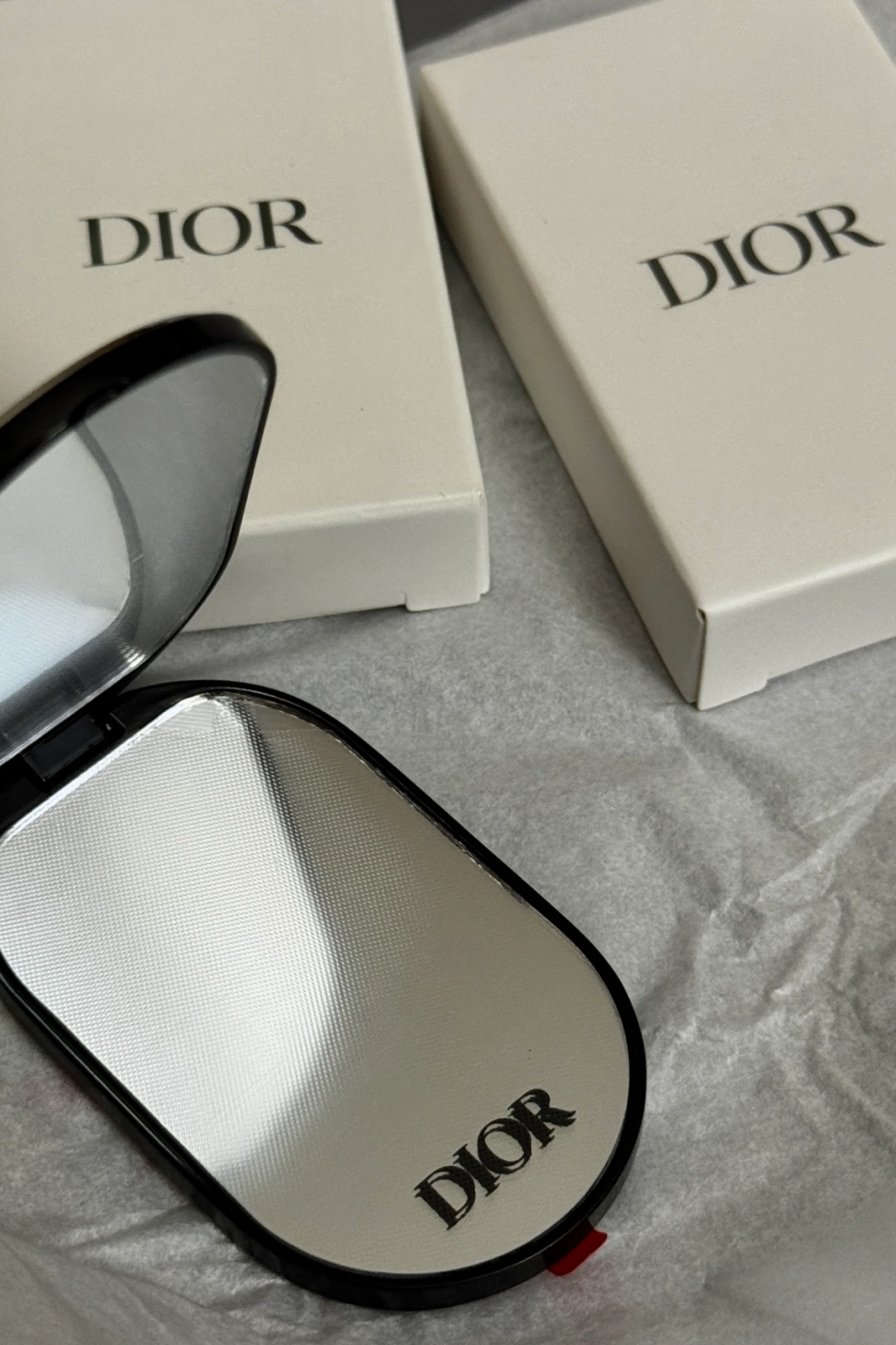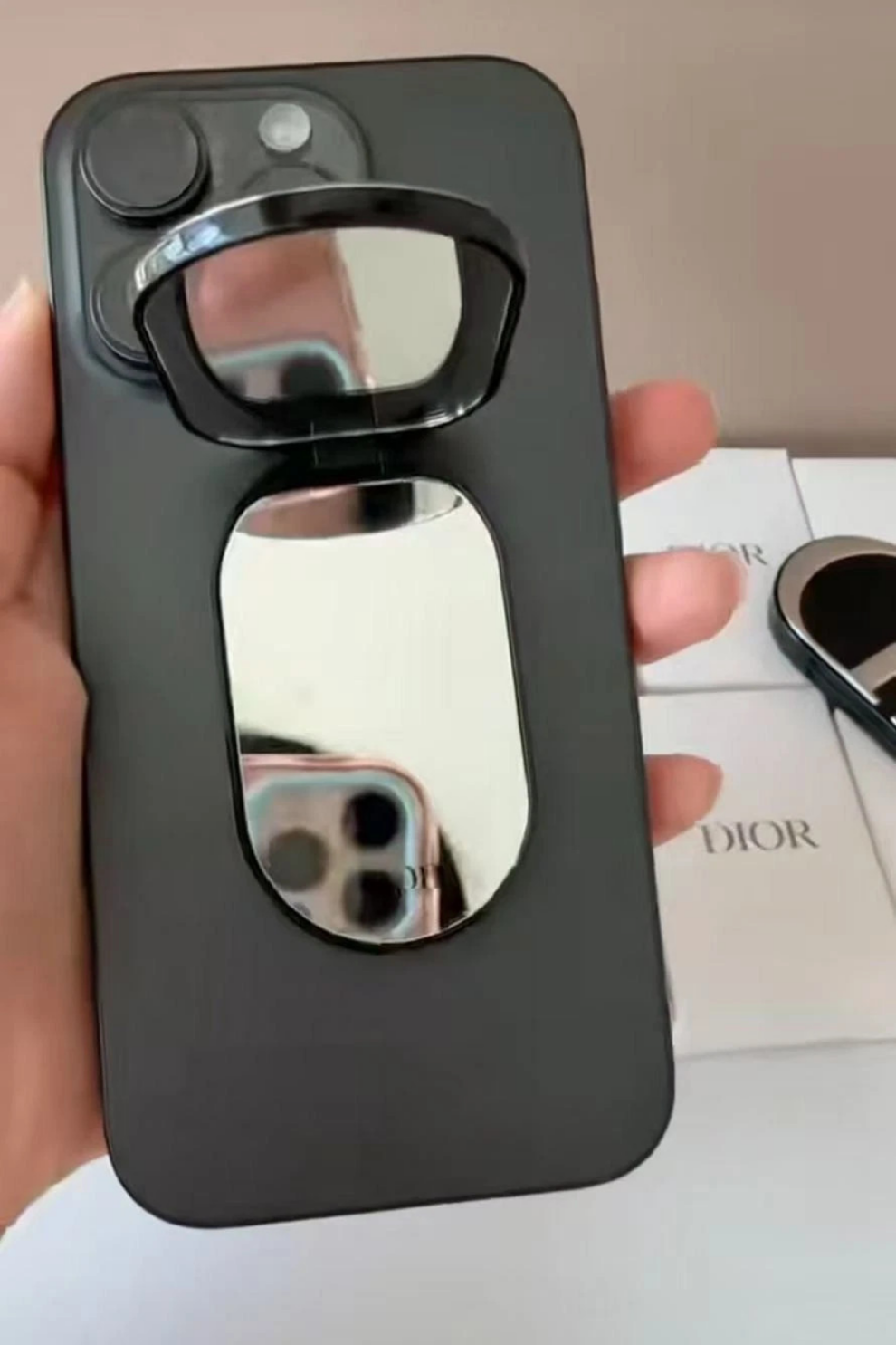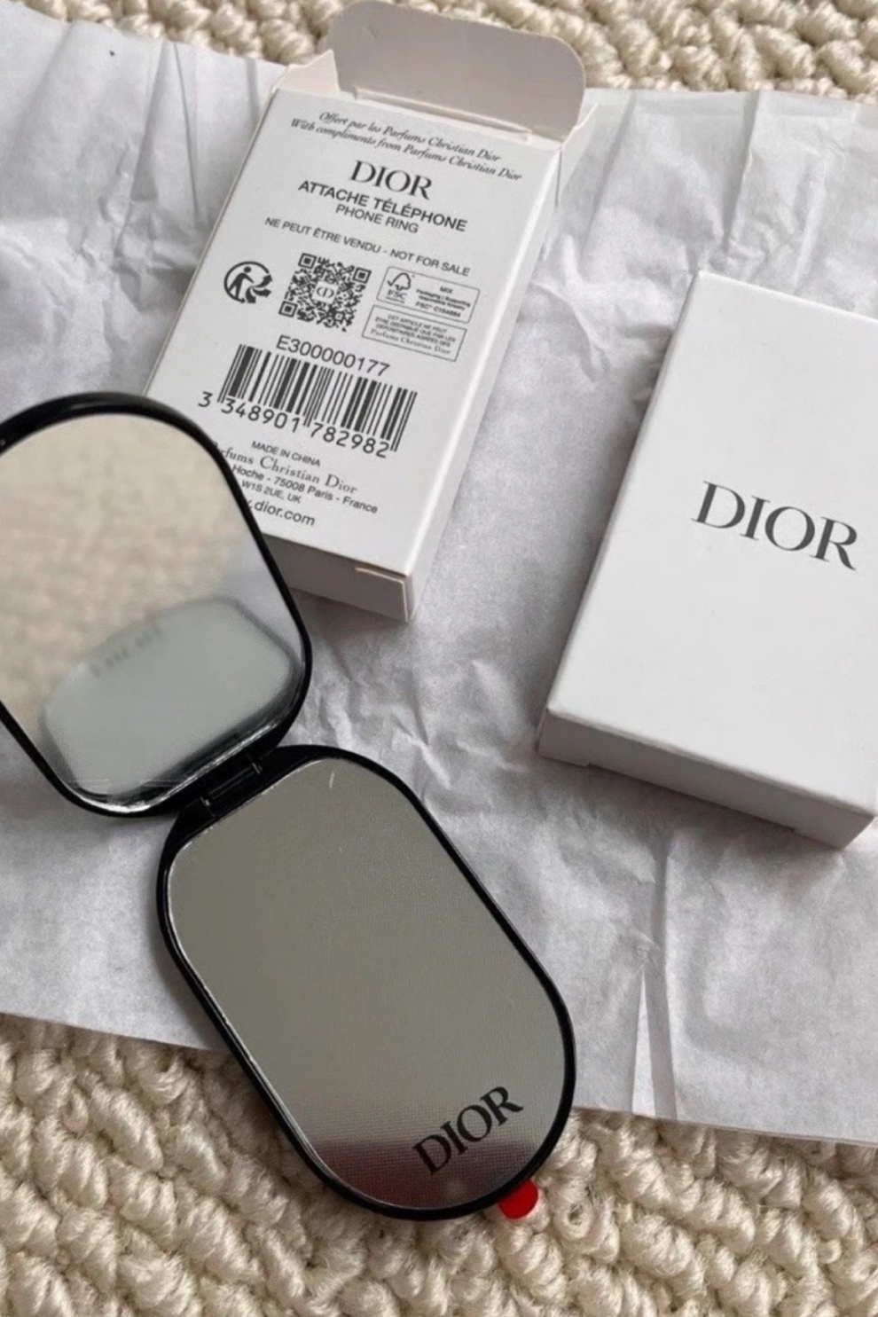 Компактное зеркало-держатель для смартфона от Dior Beauty — это элегантный аксессуар, объединяющий функциональность и фирменную эстетику Дома Dior. Тонкий корпус с лаконичной чёрной отделкой и утончённой овальной формой дополнен изящным серебристым логотипом CD, который превращает аксессуар в выразительную деталь повседневного образа.