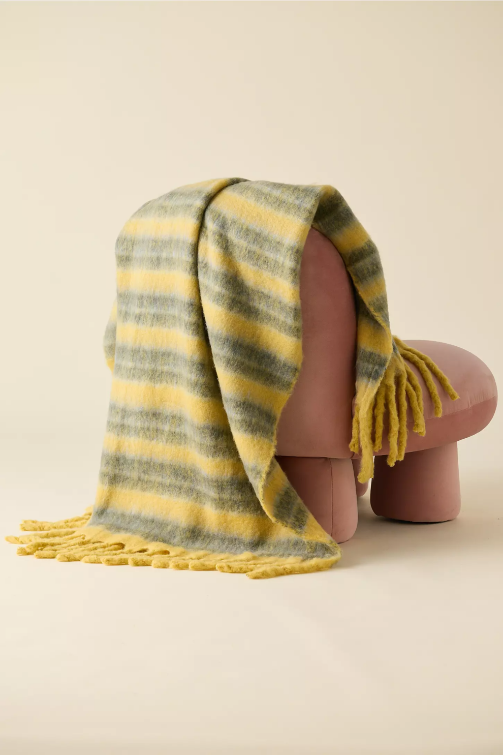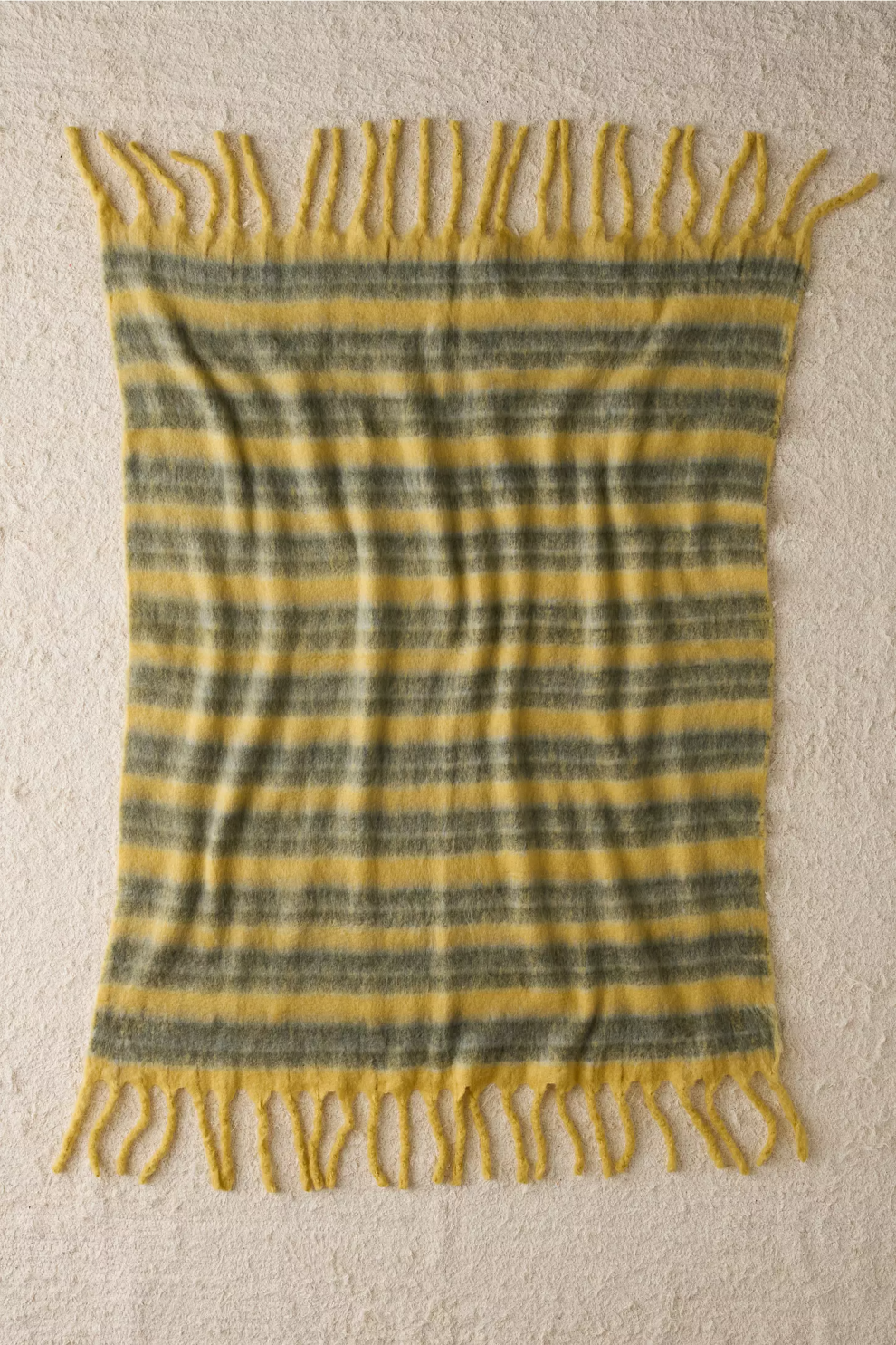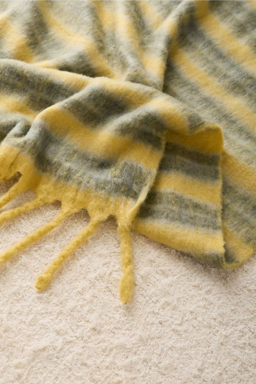 Полосатый дизайн в желто-зеленом цвете дарит визуальный акцент и яркость интерьеру. Универсальный плед можно использовать как декоративный элемент на кровати или диване, а лёгкость и мягкость делают его идеальным для отдыха круглый год. Этот плед не только добавит уюта вашему дому, но и станет заботливым подарком для близких — символом тепла, света и комфорта.