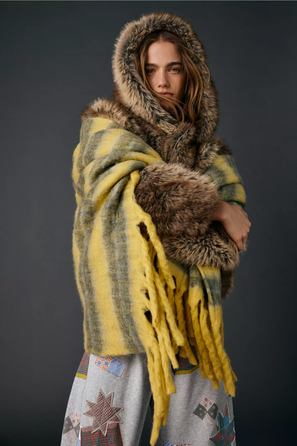 Мягкий полосатый плед Fauxine
