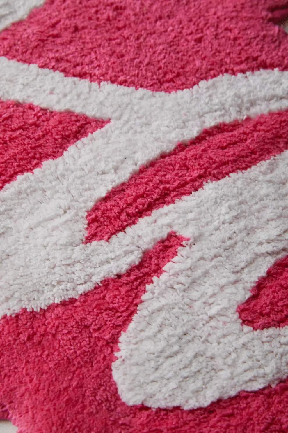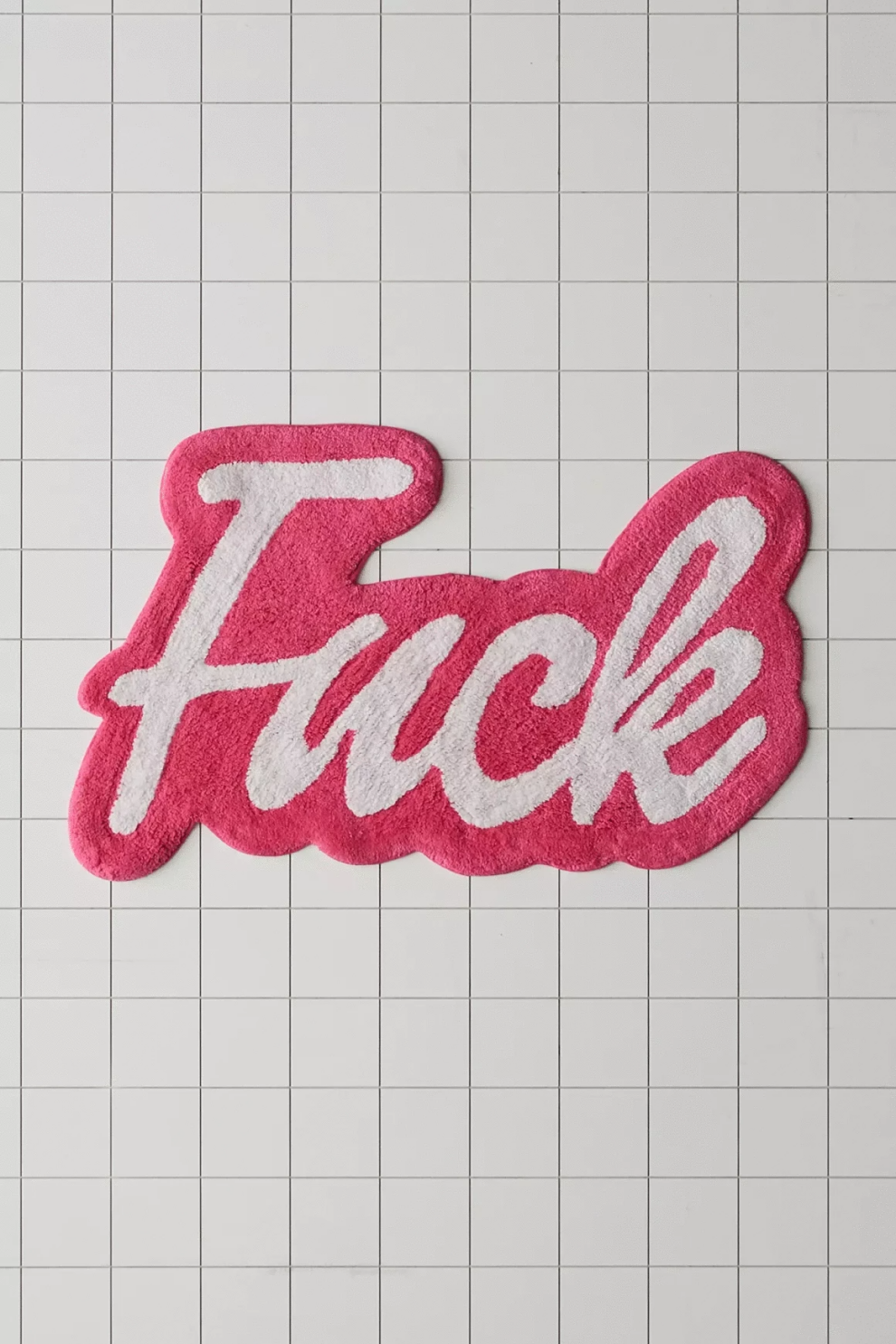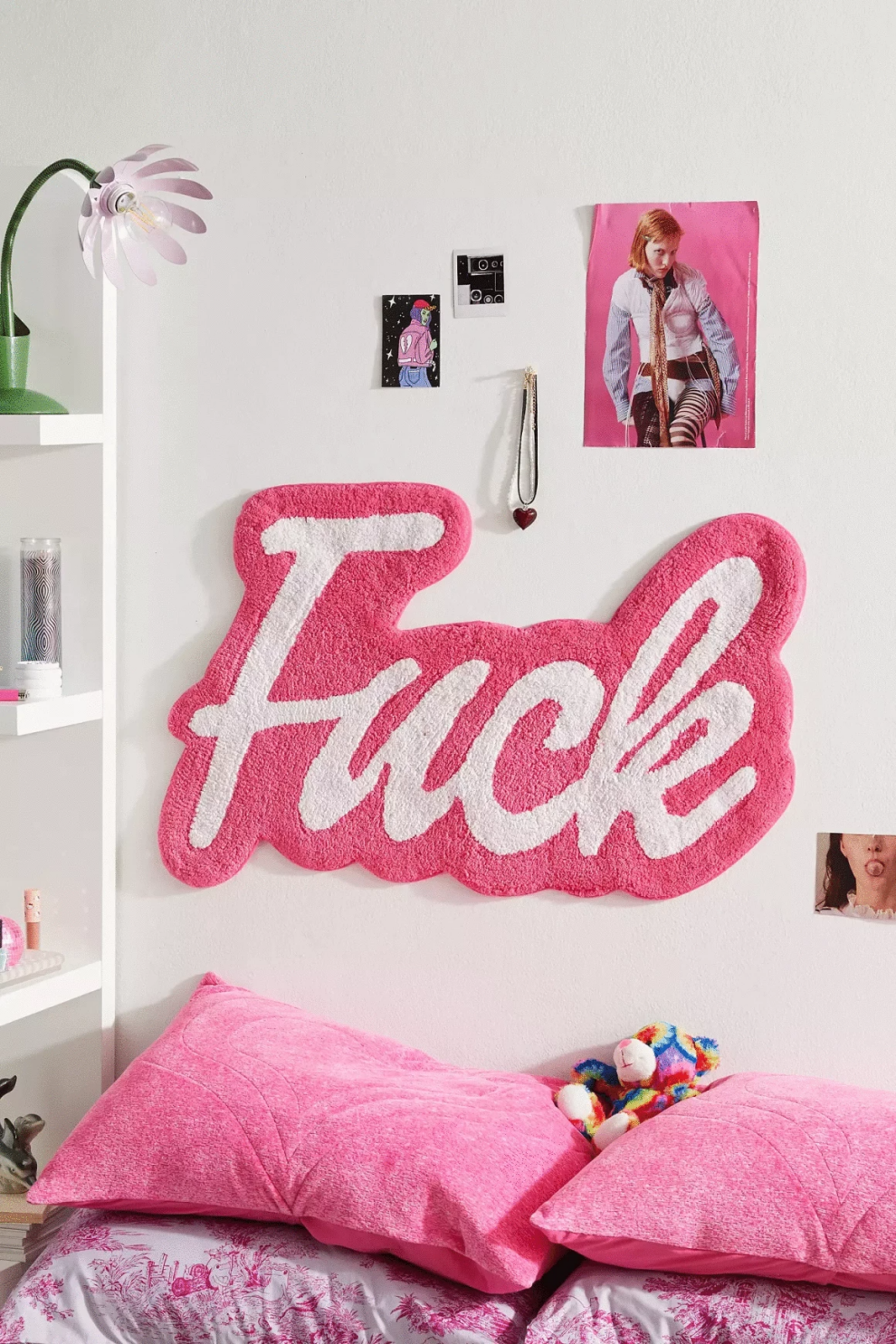 Розовый декоративный тафтинговый коврик с надписью «F*ck» от Орбита Home – арт-объект для стильного интерьера.